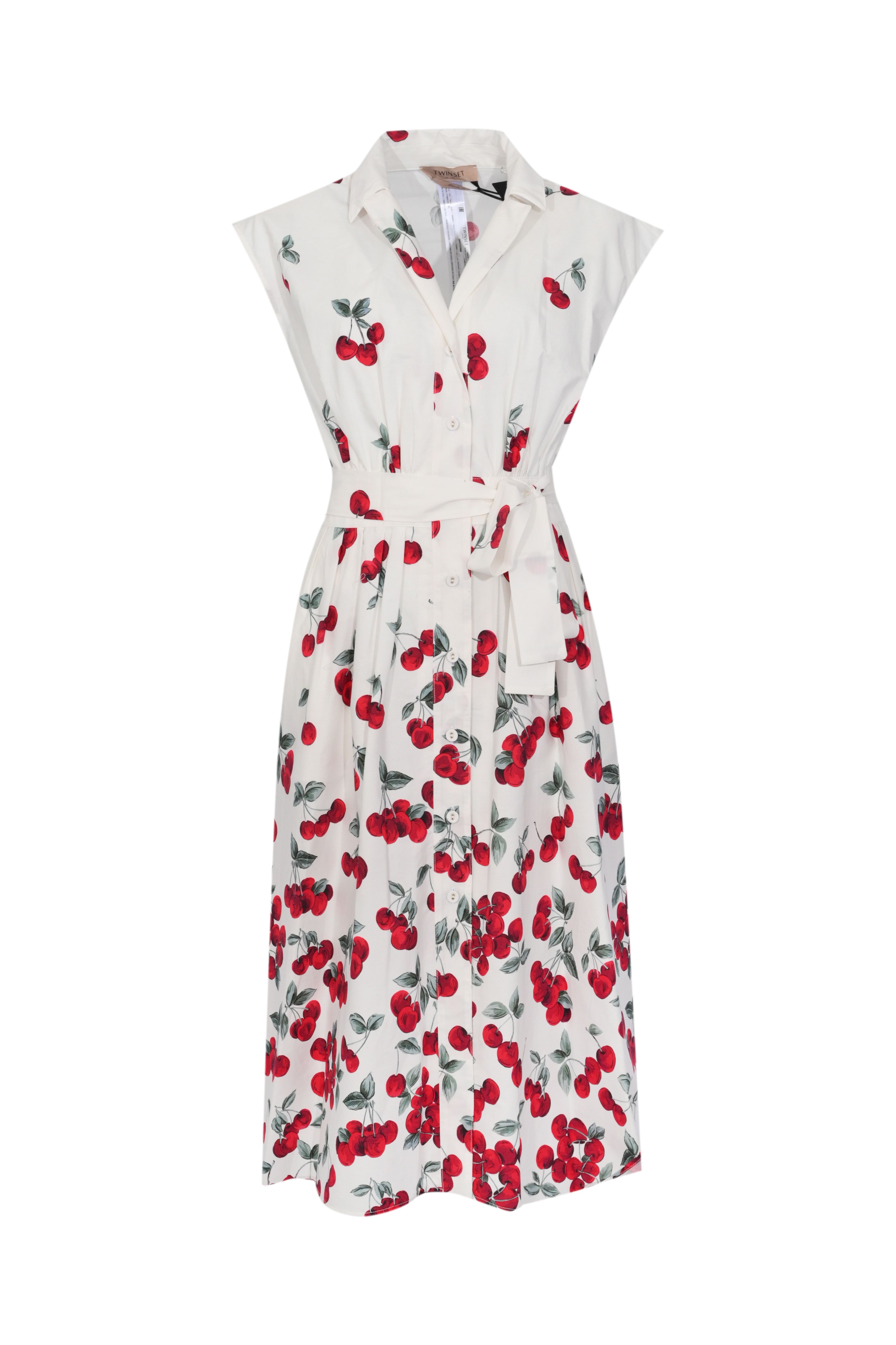 Abito da donna in popeline di cotone, Twinset, modello longuette con stampa ciliegie