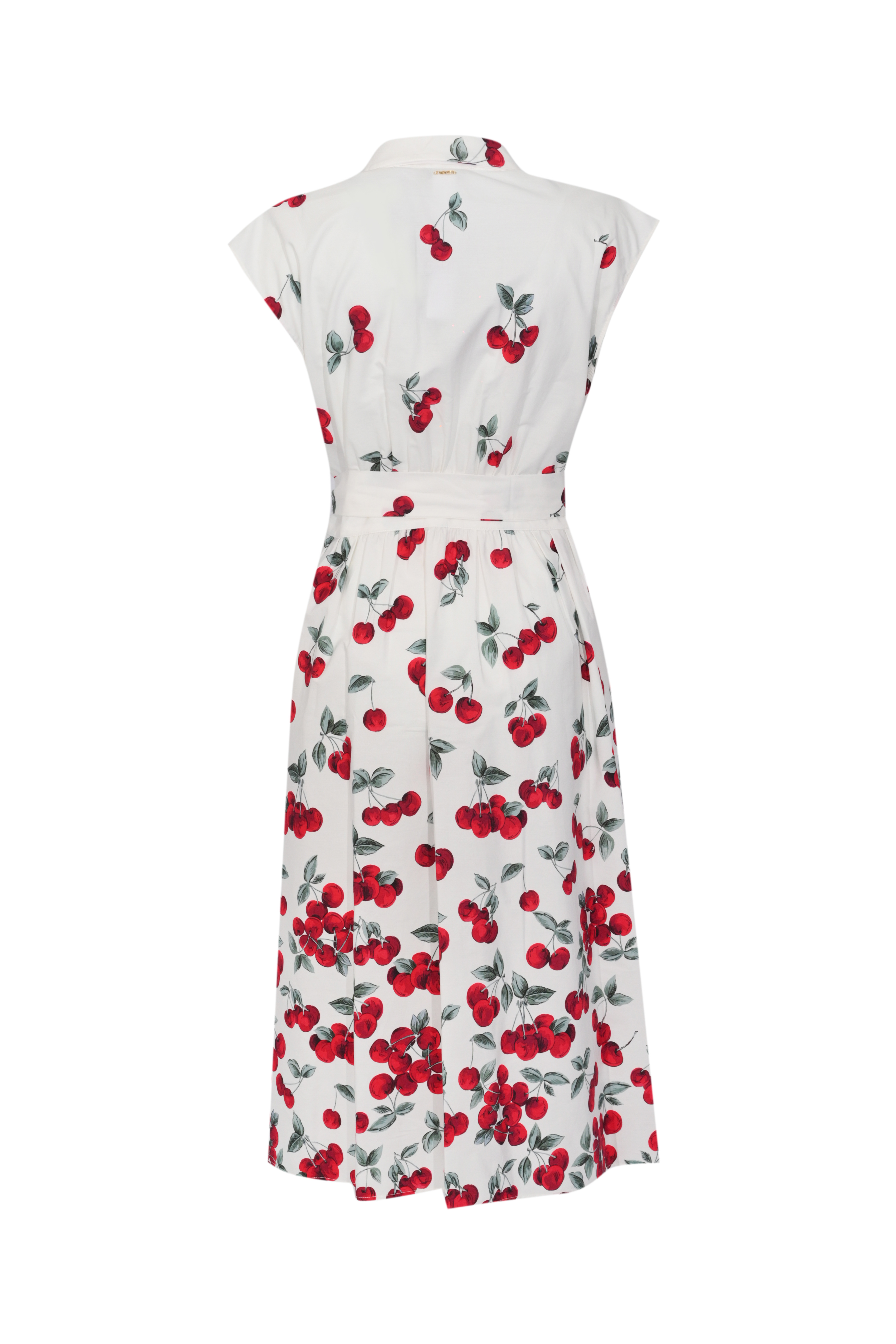 Abito longuette in popeline di cotone con stampa ciliegie