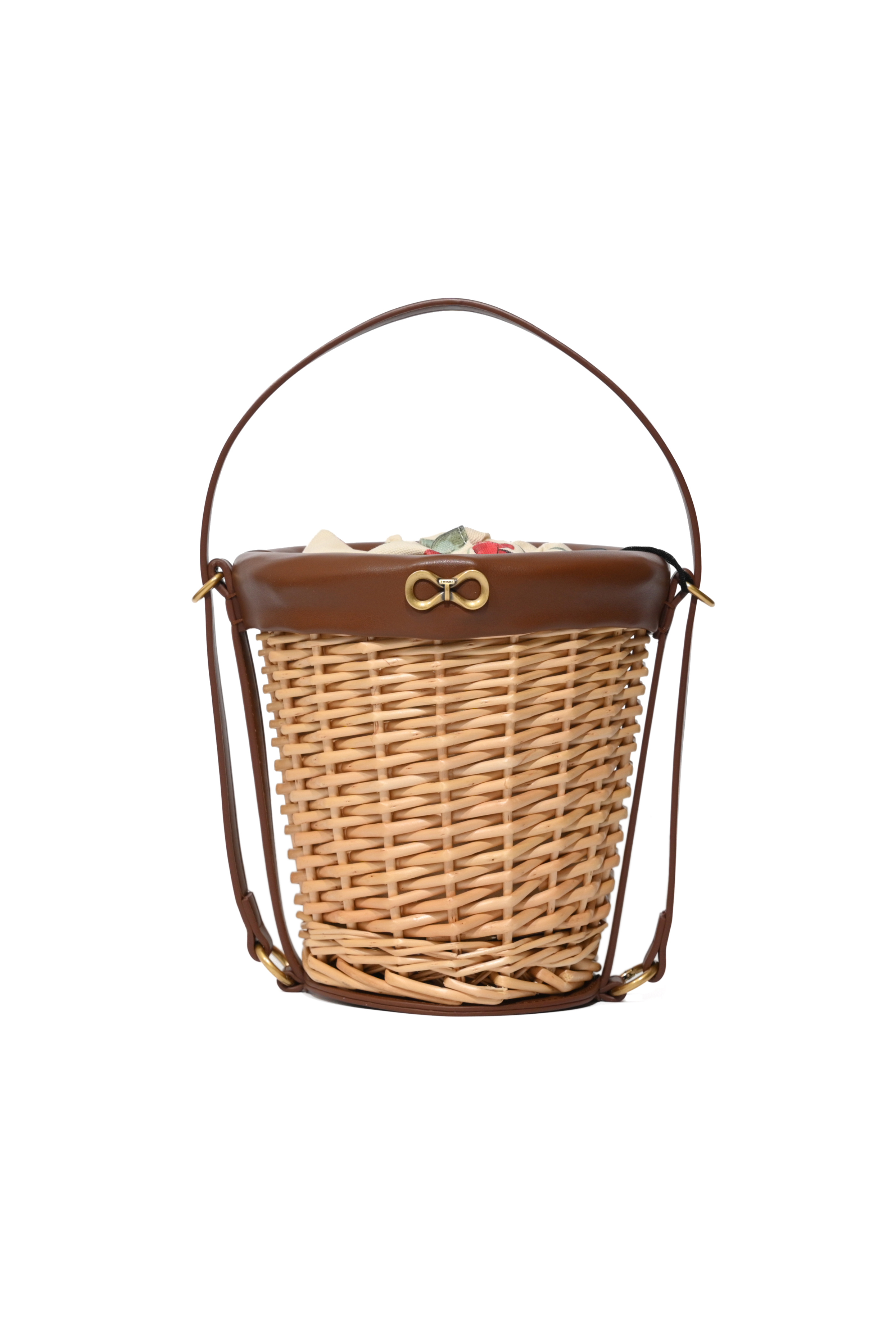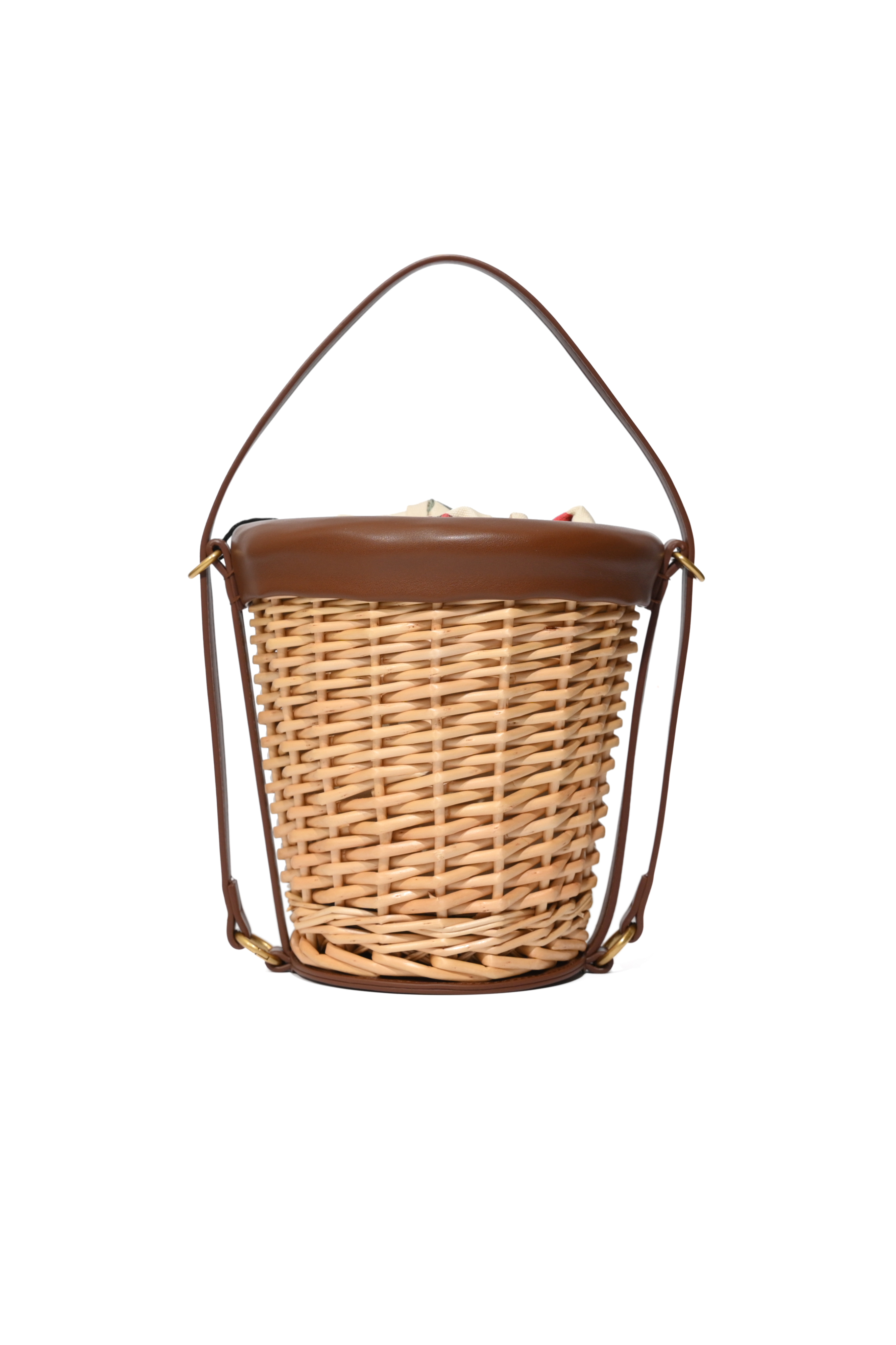 Borsa da donna in vimini, Twinset, modello secchiello con pochette