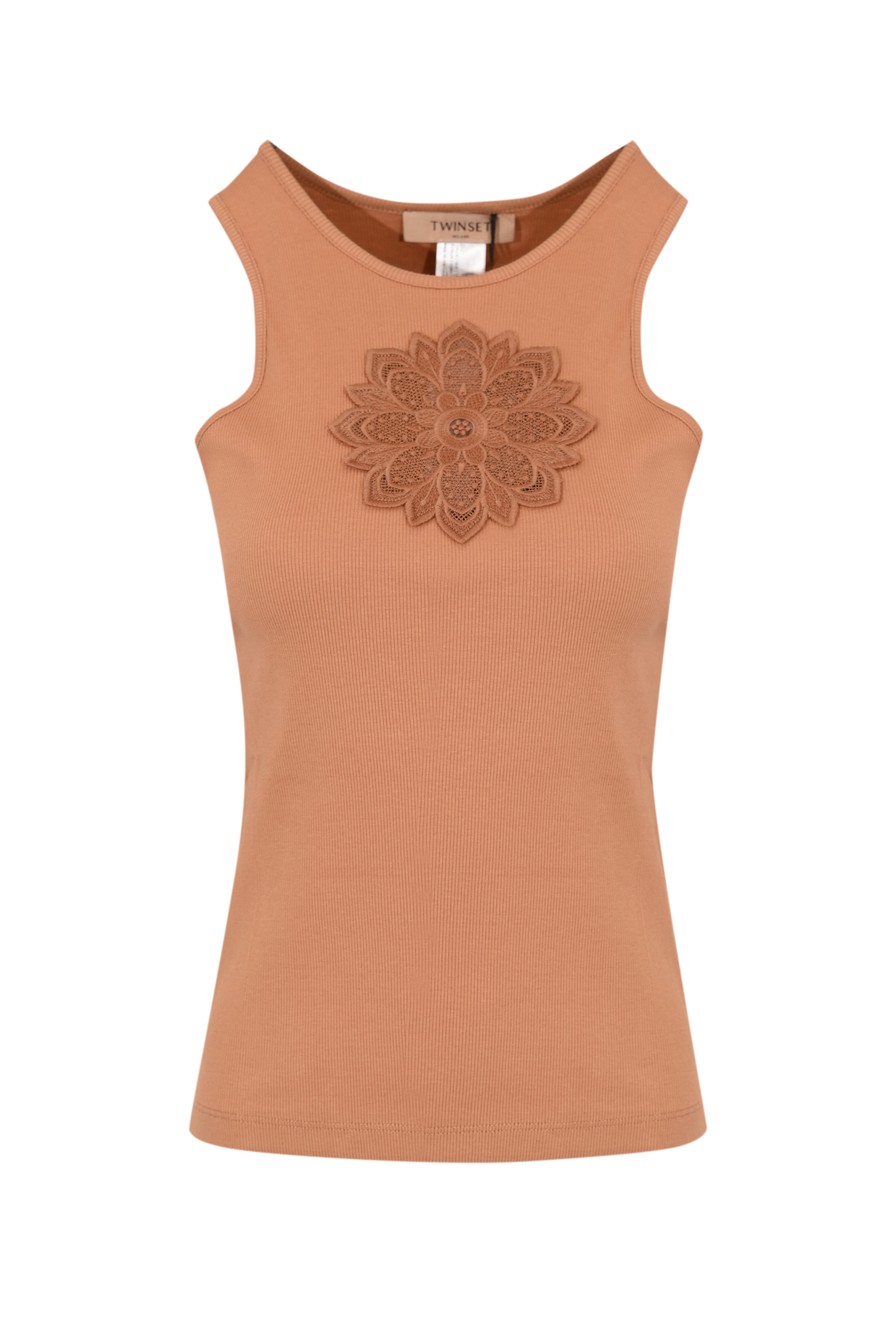 Canotta da donna in cotone, Twinset, modello canotta con ricamo floreale