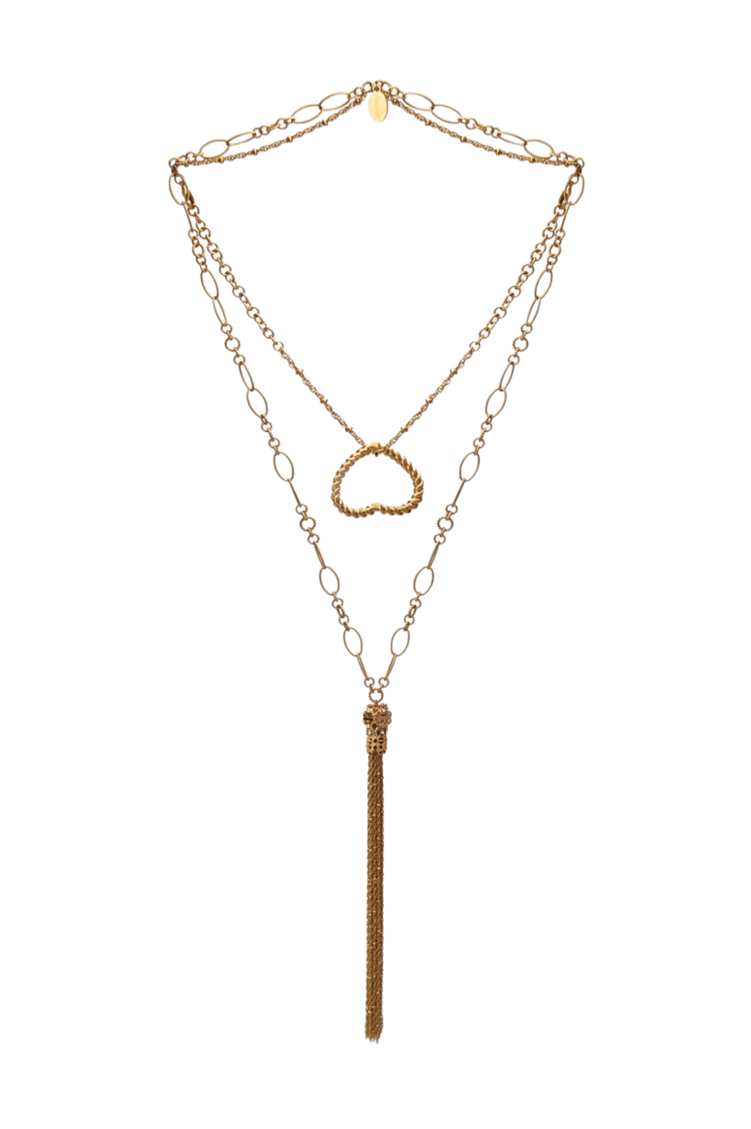 - Dettagli: doppia catena decorativa con cuore intrecciato centrale e pendente a frange, elementi lavorati con micro incisioni decorative