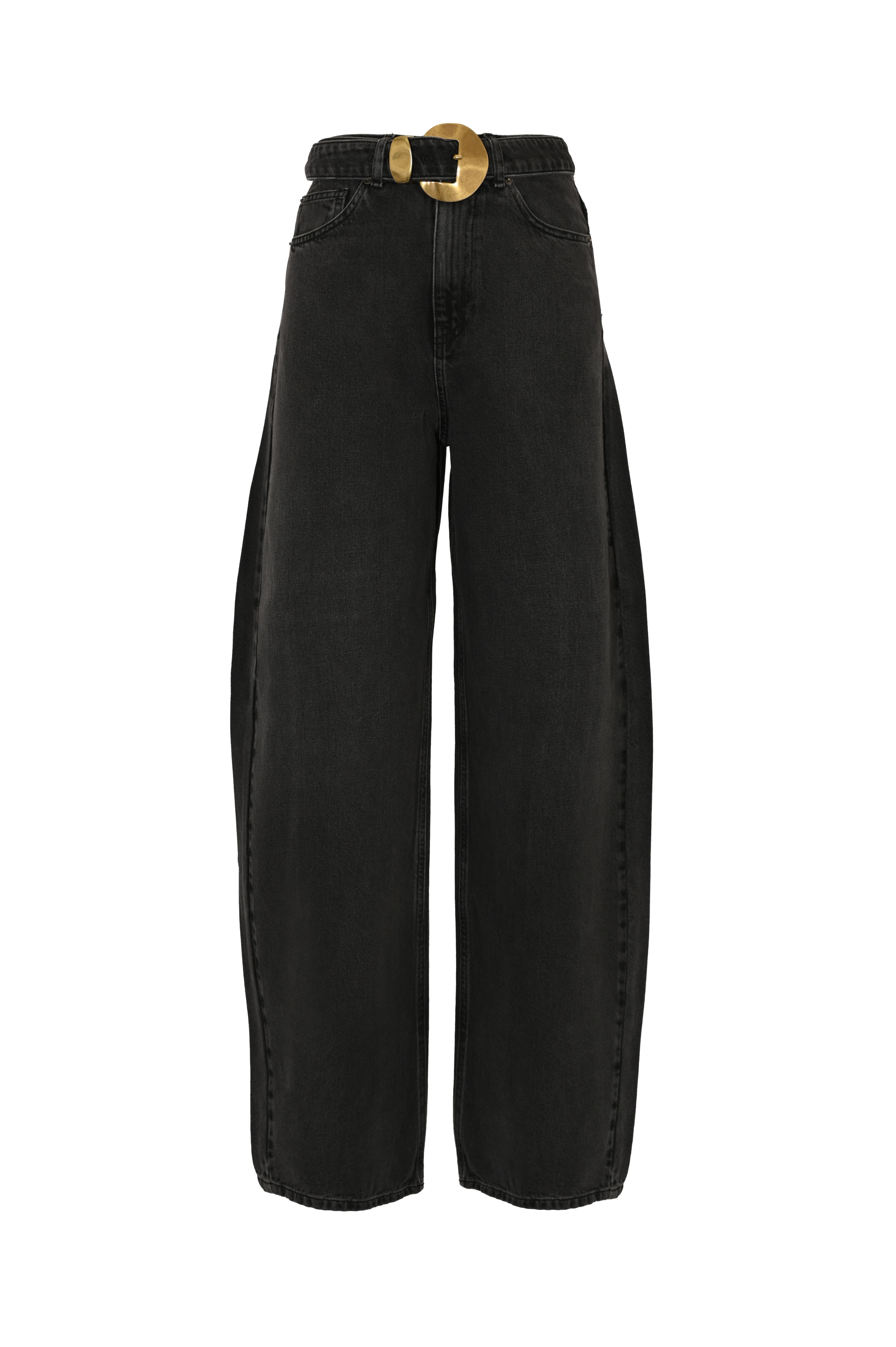 Jeans in denim nero con cintura e maxi fibbia