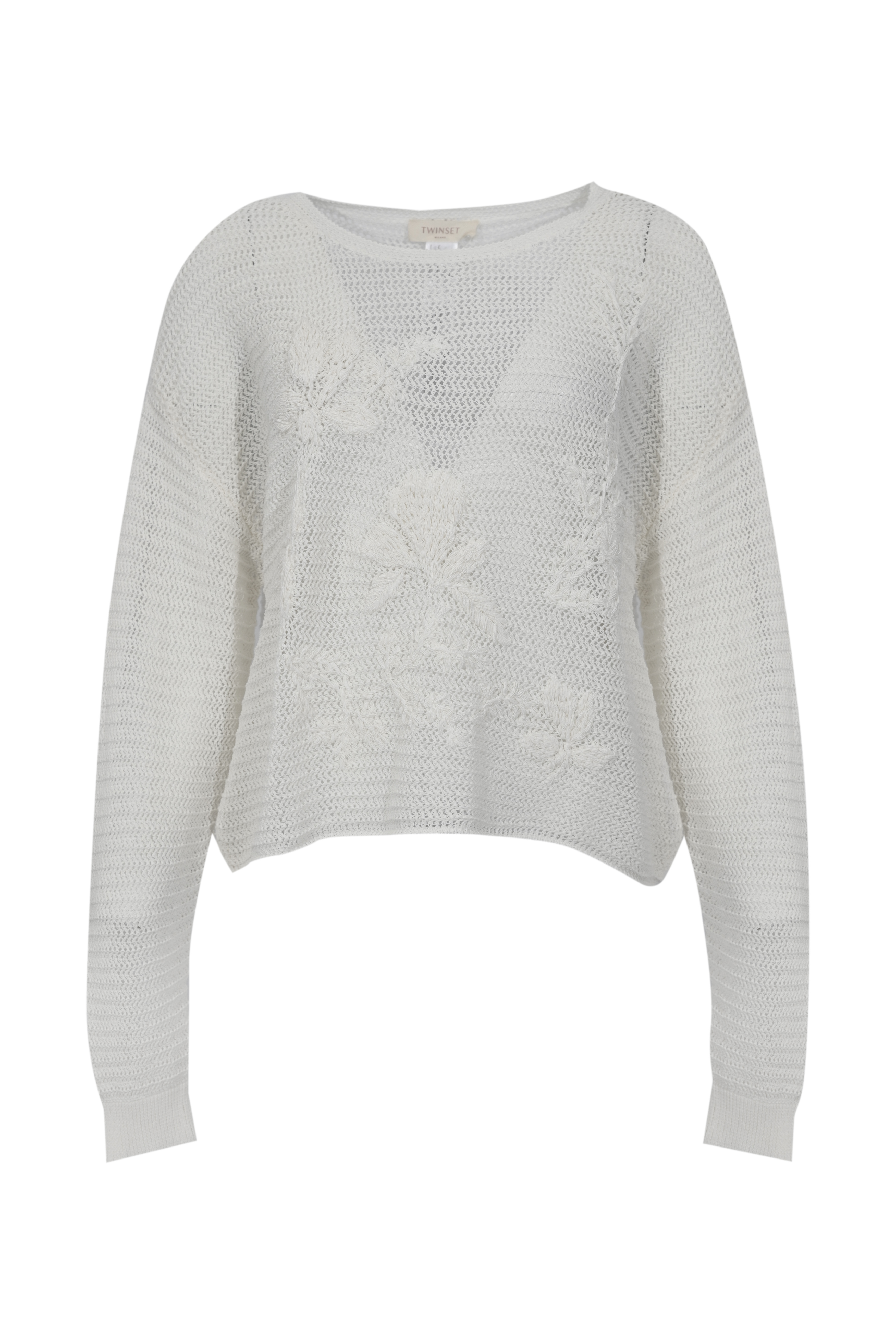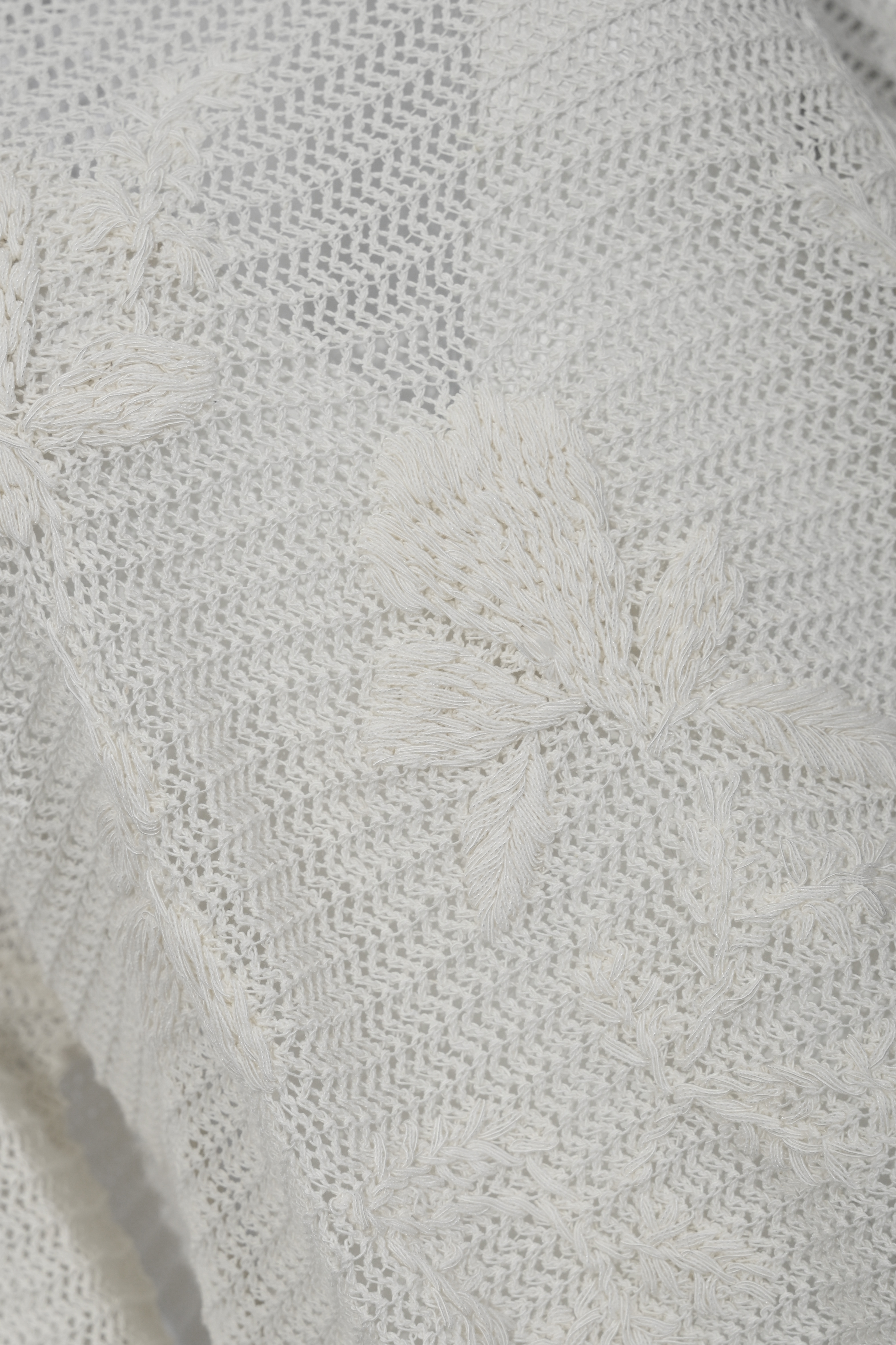 - Dettagli: ricamo floreale realizzato a mano, lavorazione traforata, polsini a costine