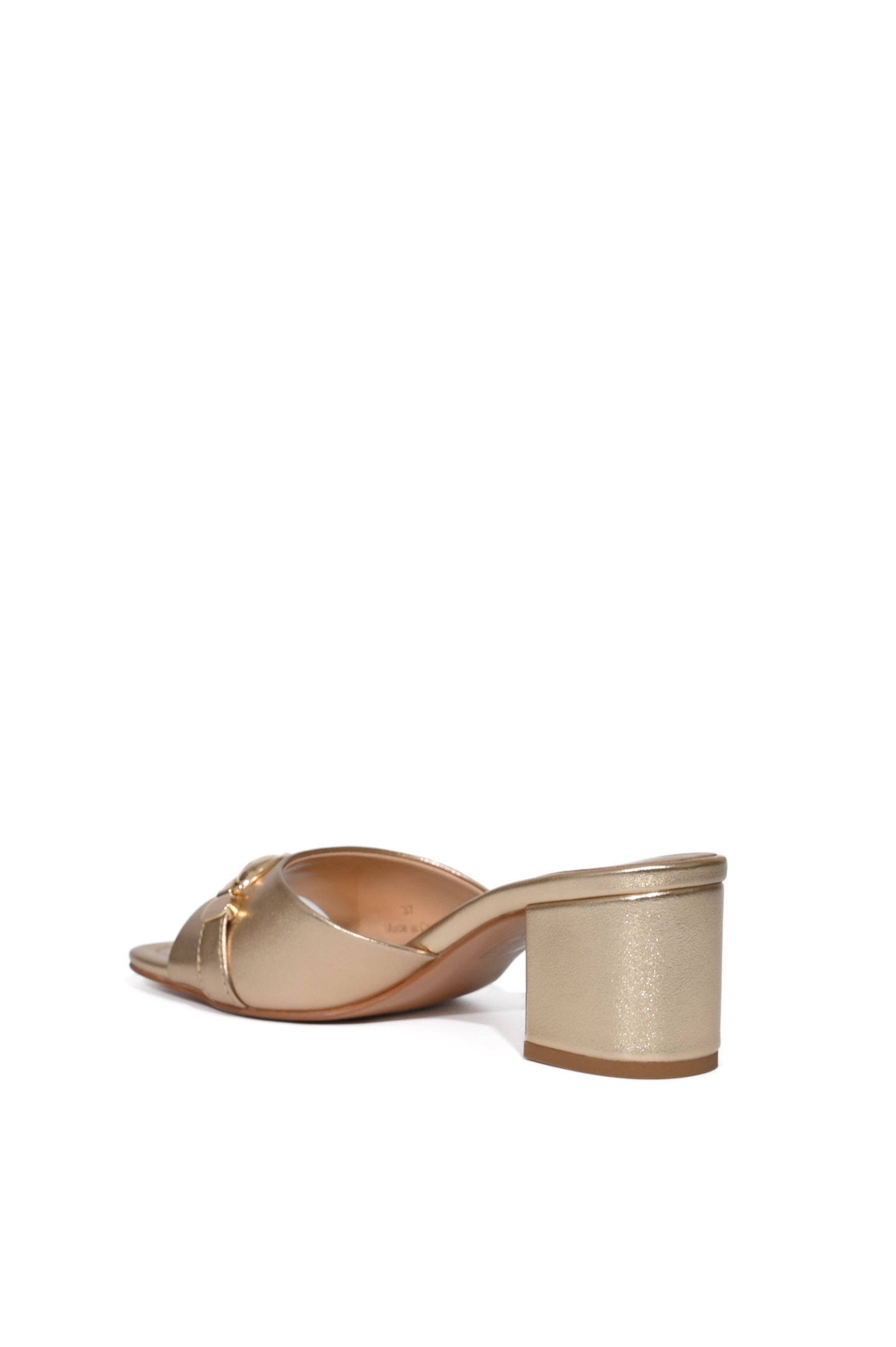 - Tomaia: materiale effetto pelle con fascia frontale e applicazione gioiello in metallo