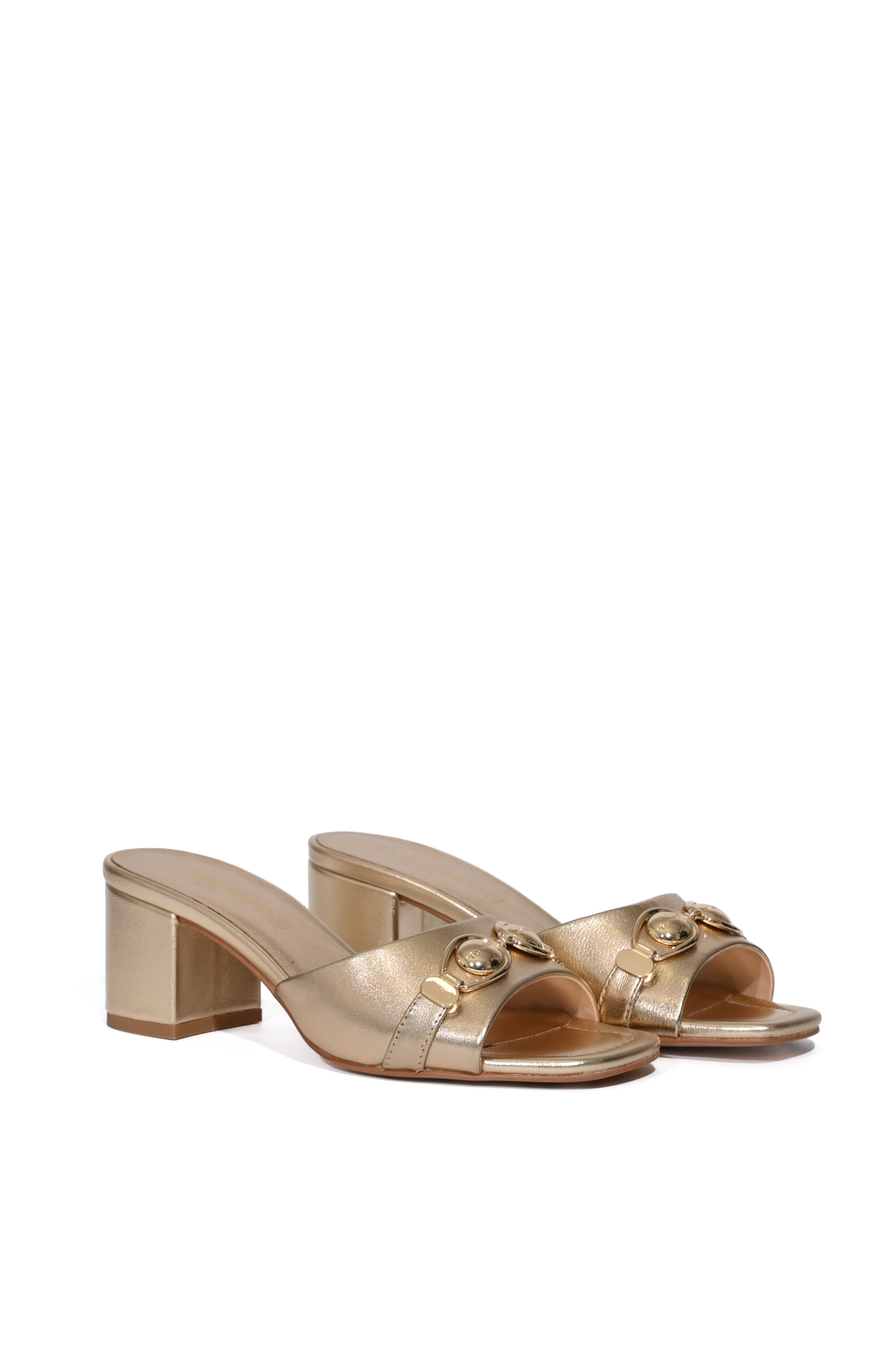 - Dettagli: dettaglio gioiello frontale in metallo dorato, cuciture a vista