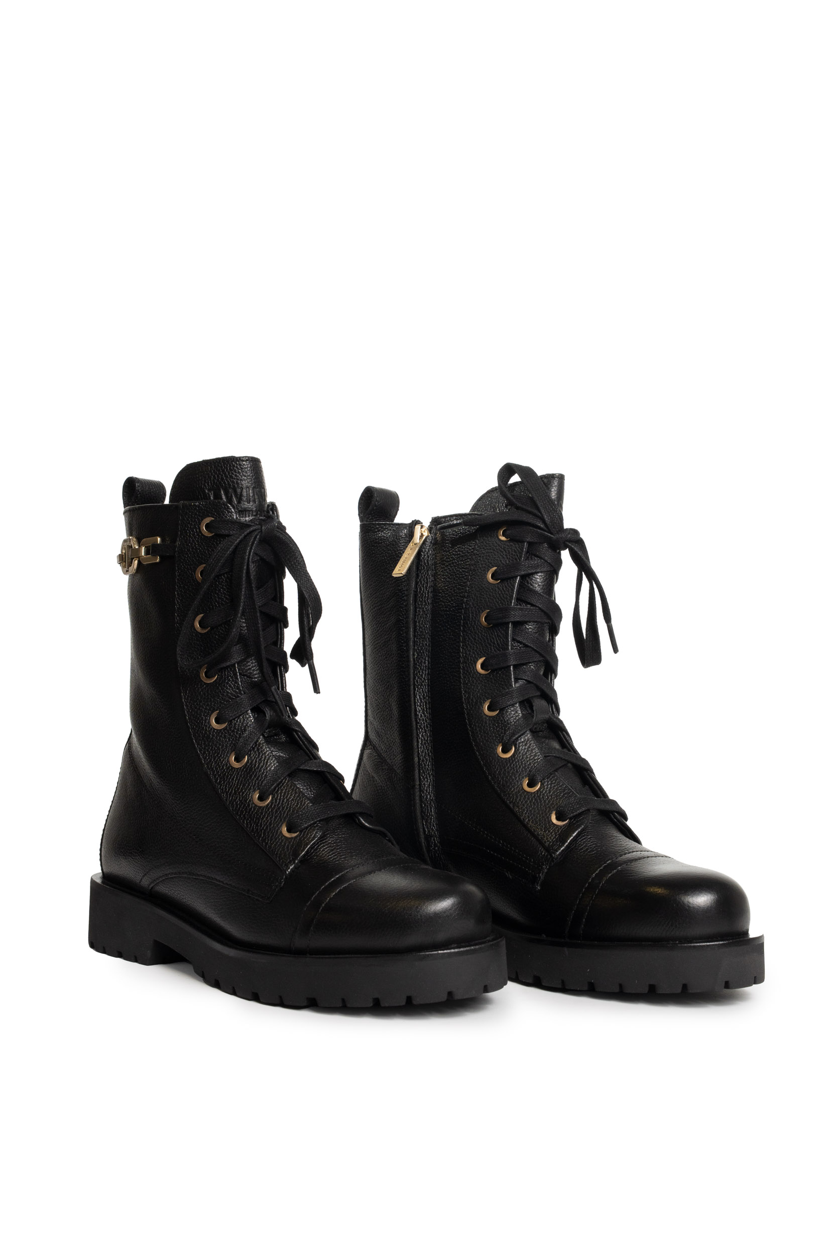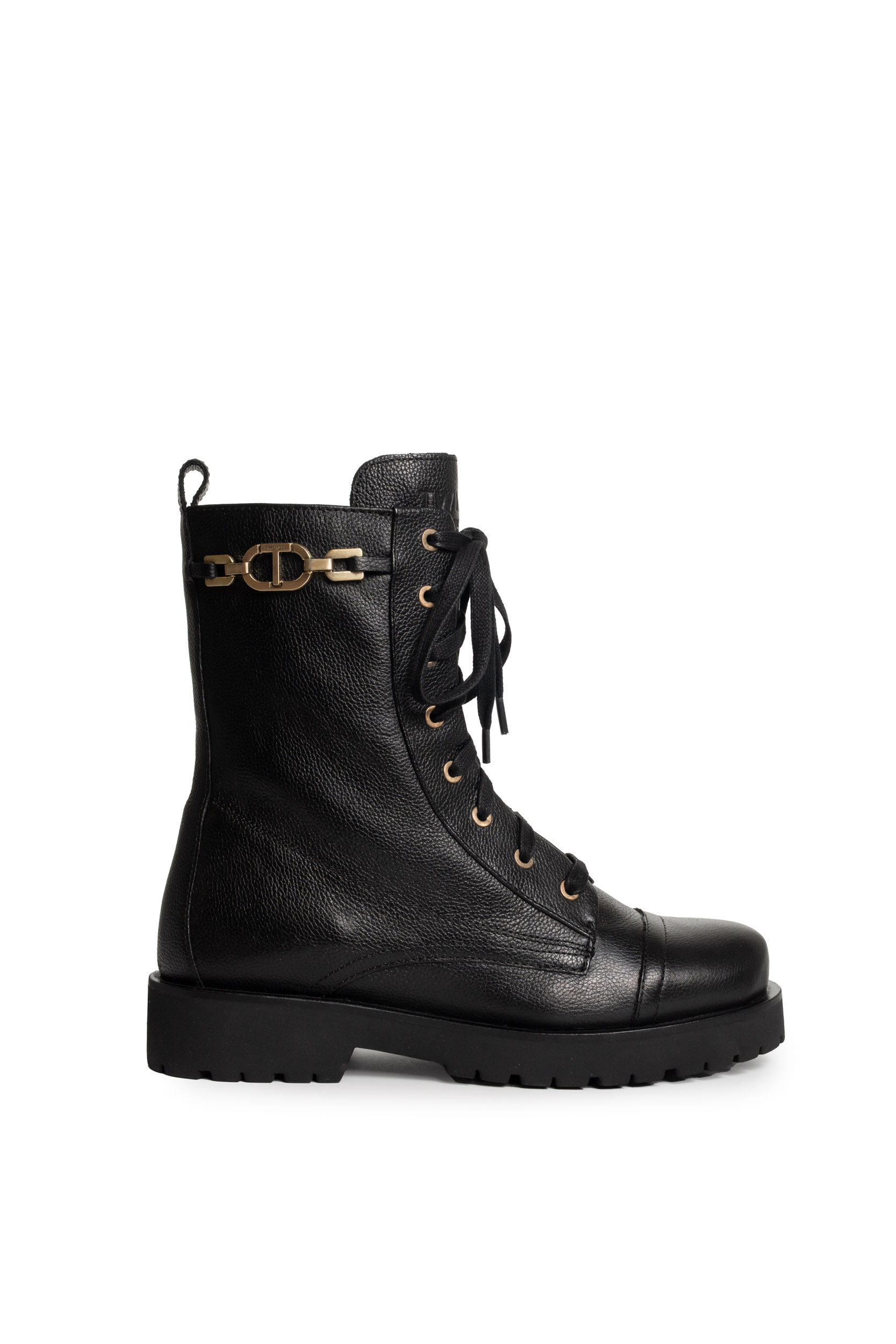 Stivaletti anfibi in pelle con catena e Oval T, Twinset