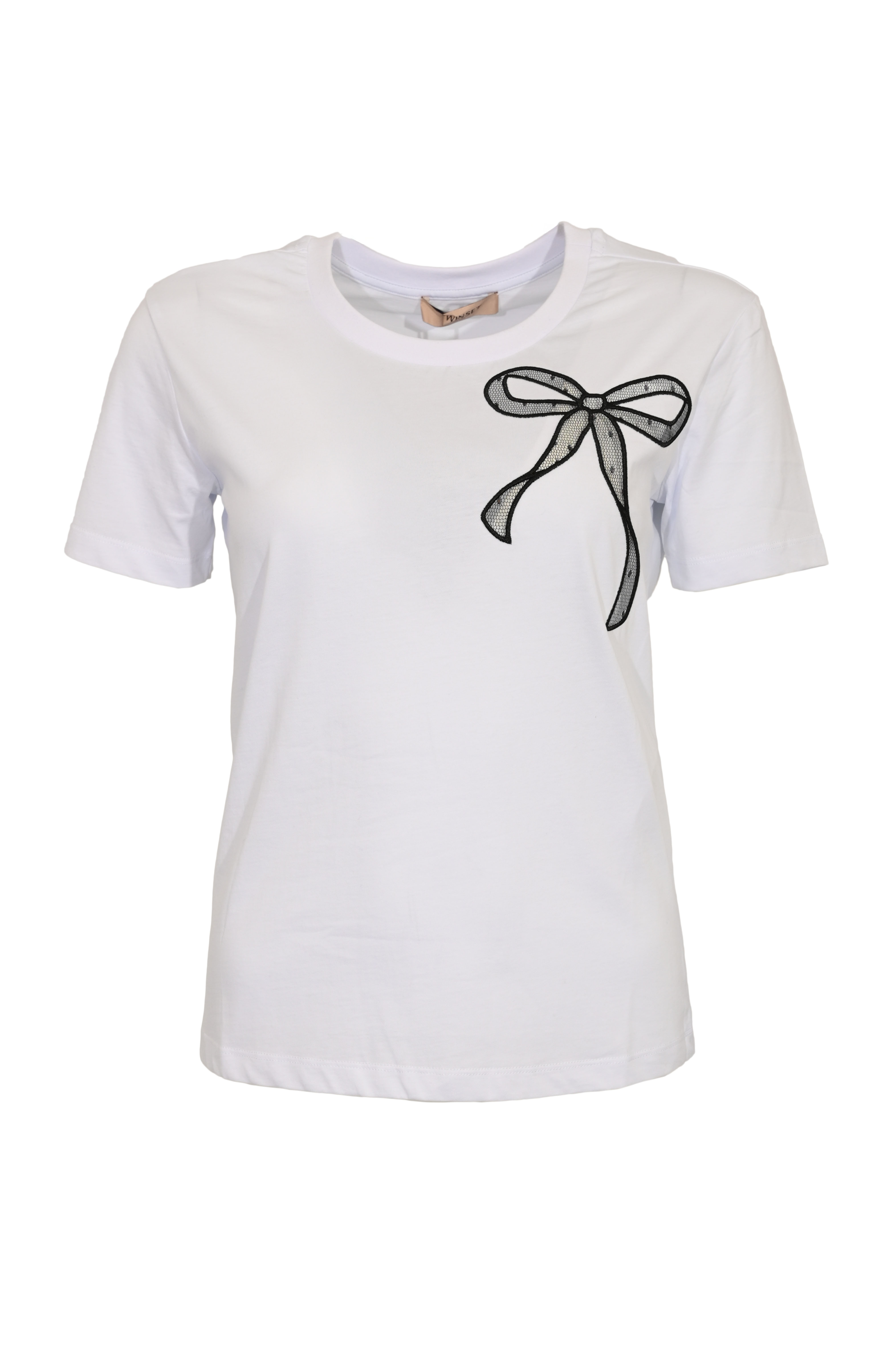 - Fantasia: tinta unita bianca con applicazione ricamata a contrasto