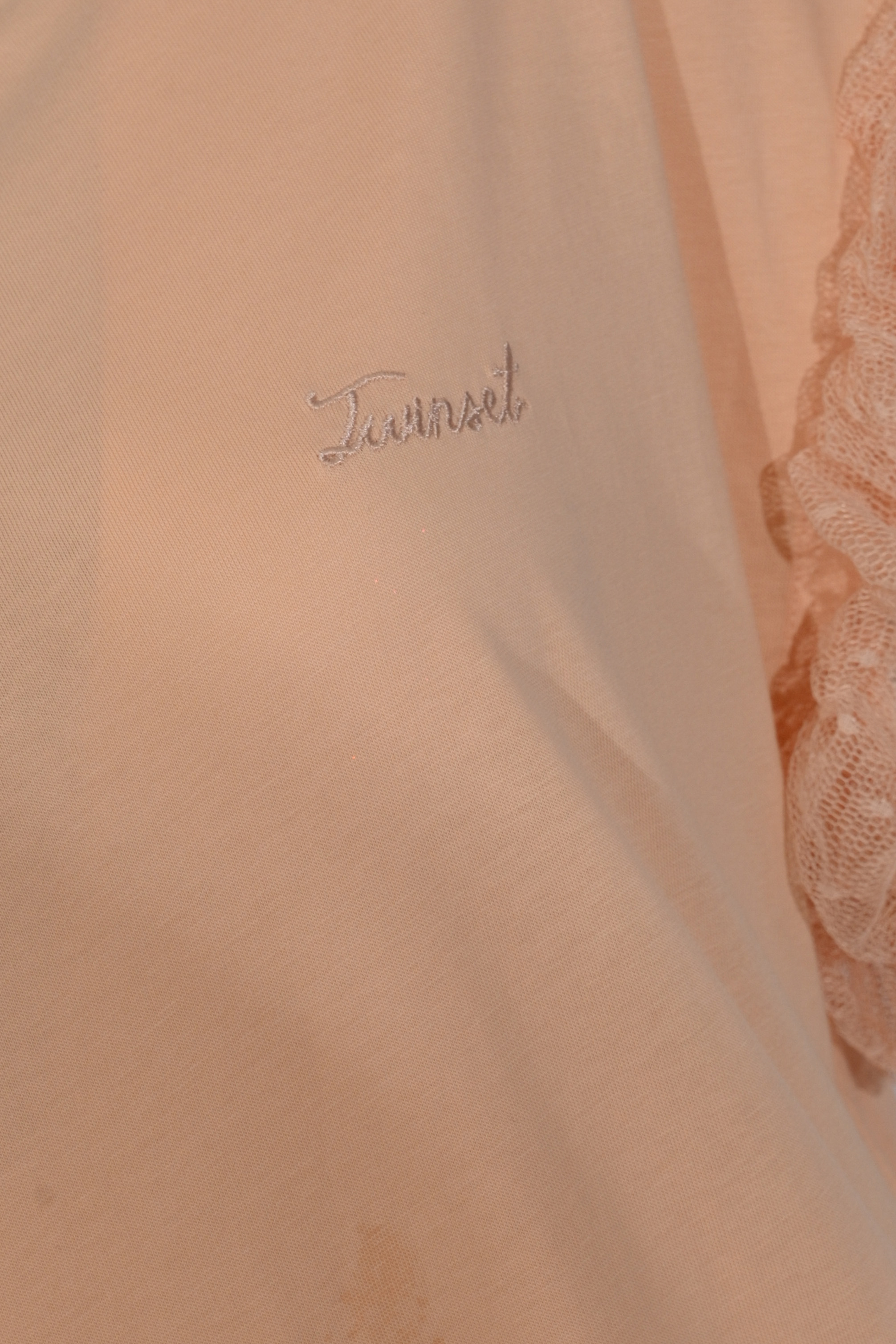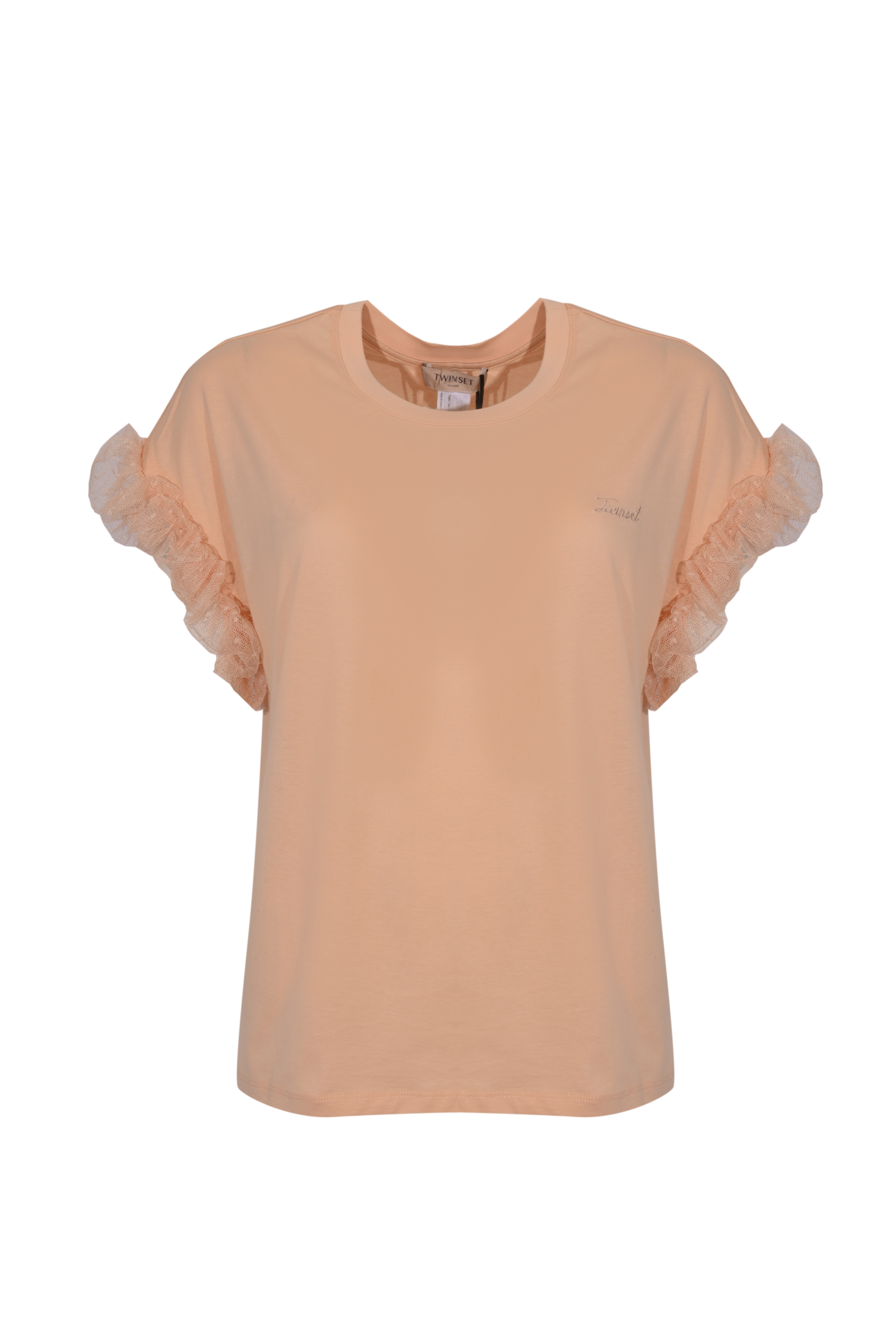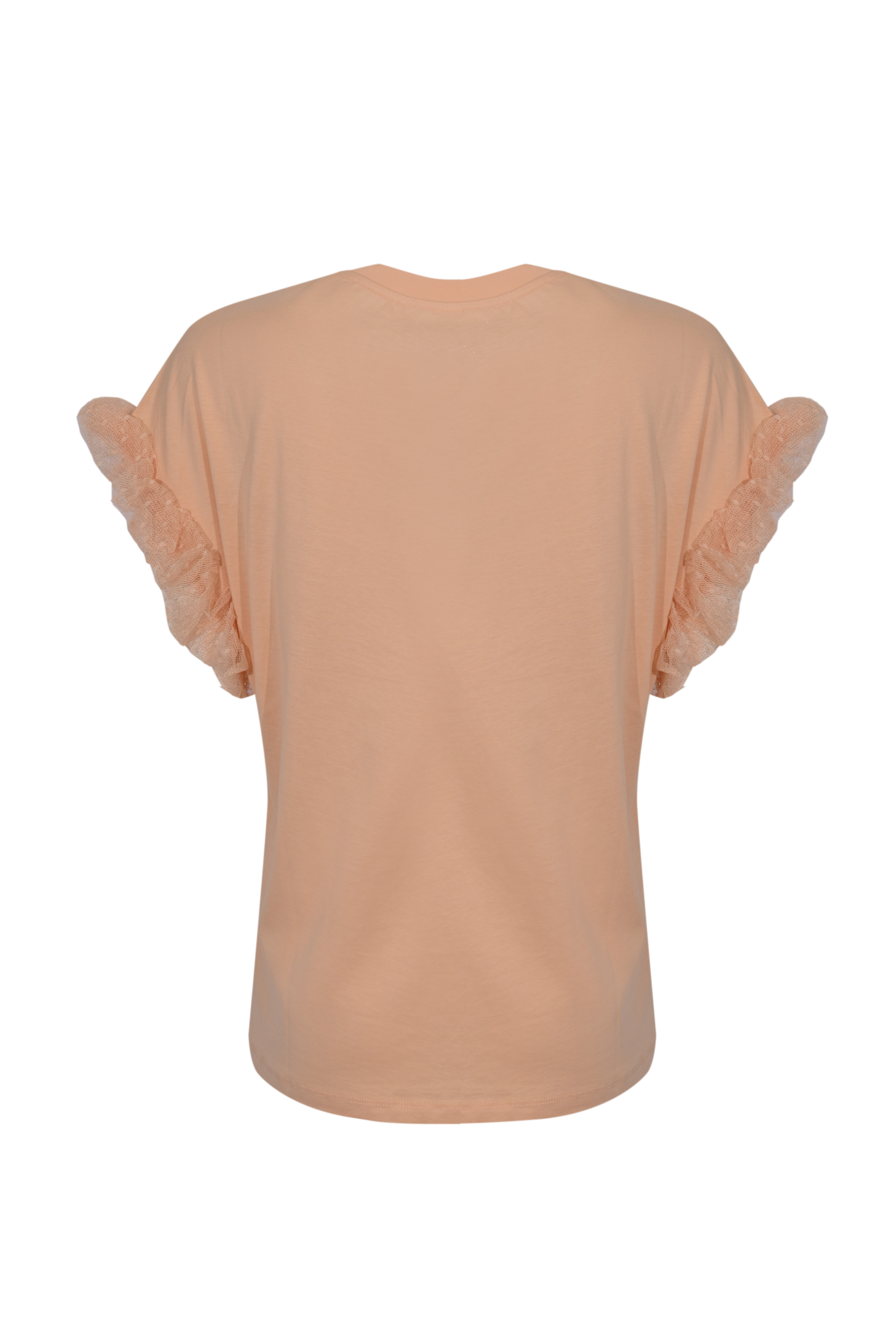 T-shirt in jersey di cotone con maniche in tulle Peach pink