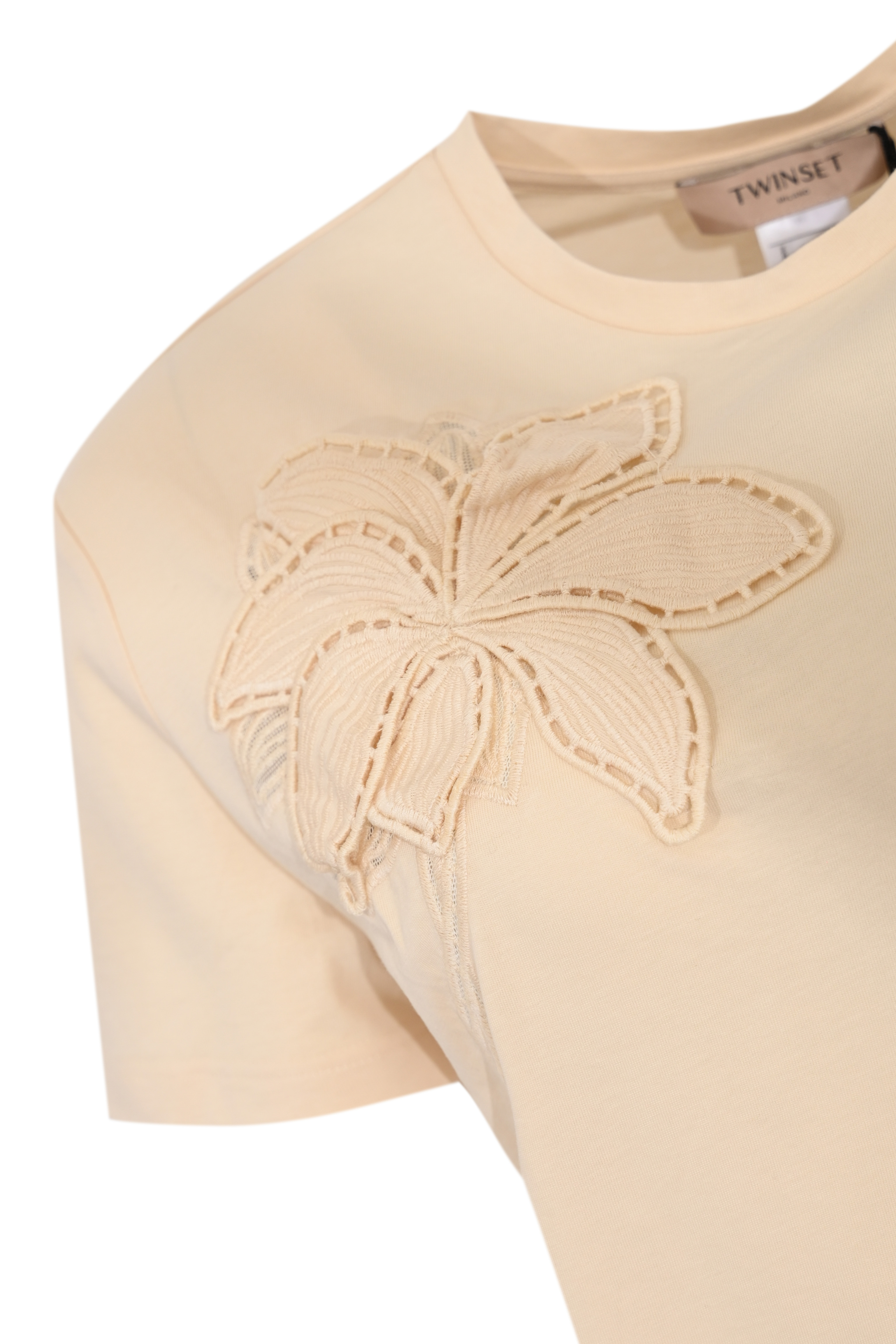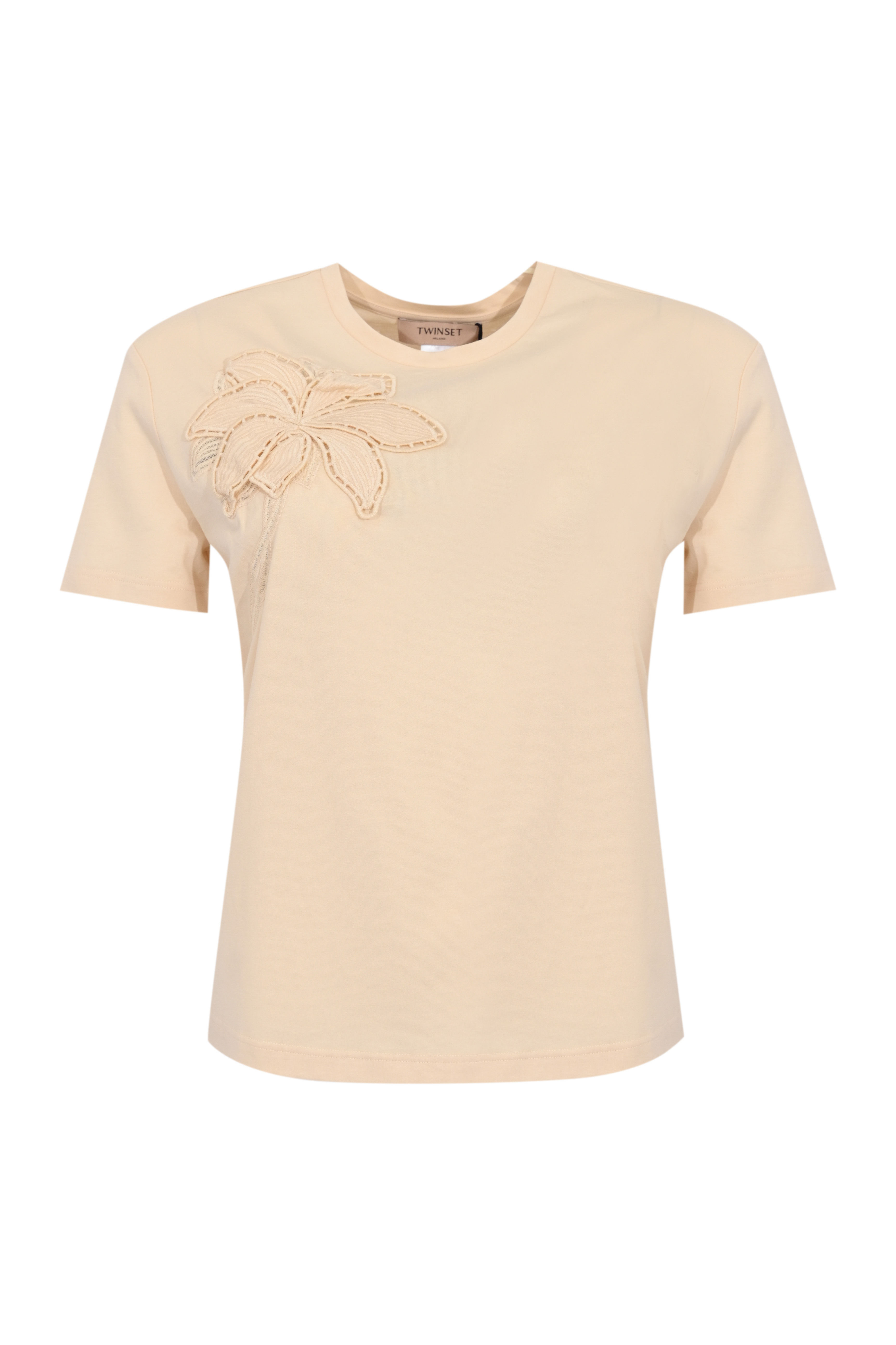T-shirt da donna in jersey di cotone, Twinset, modello con ricamo floreale