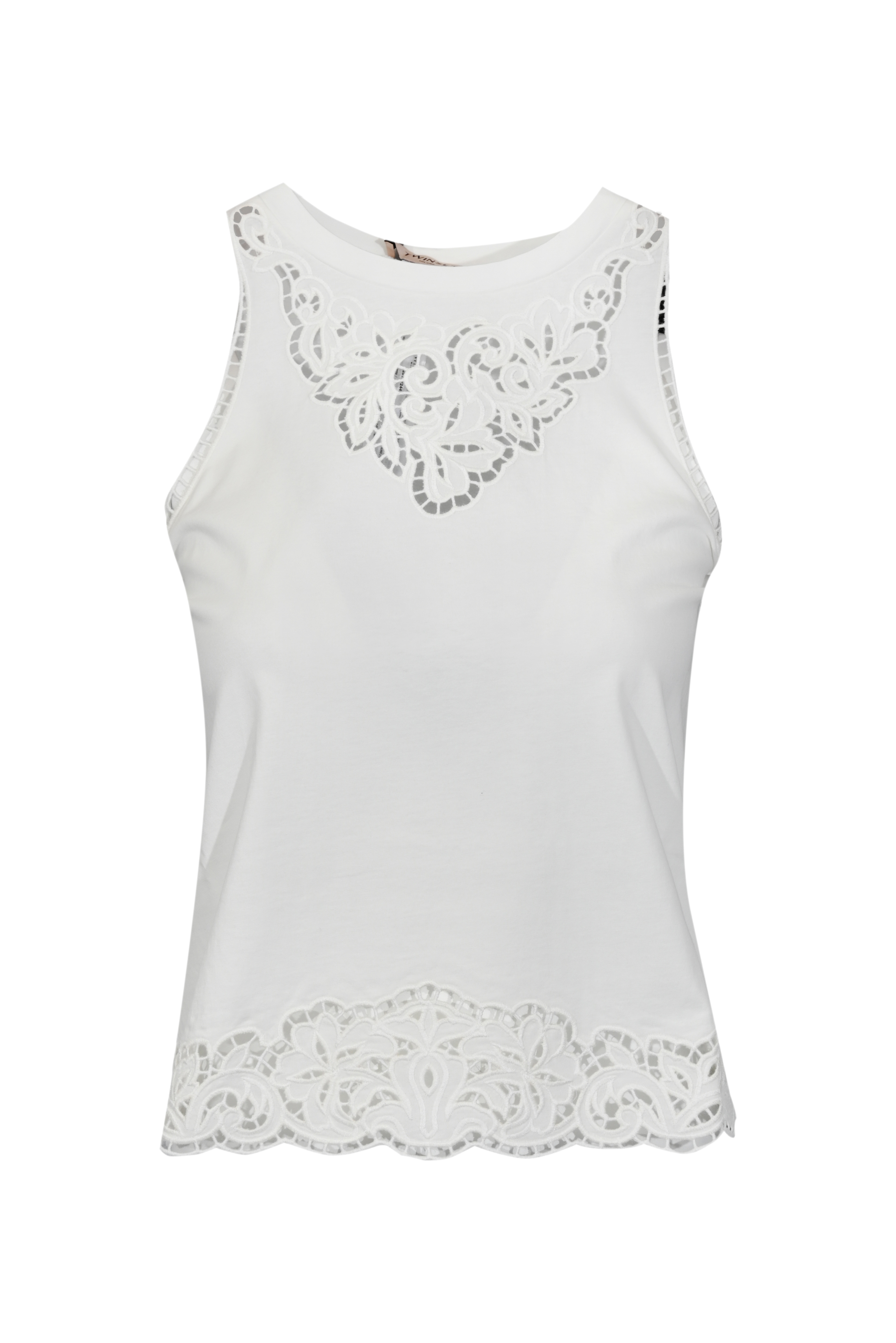 Top in jersey di cotone con ricamo intarsiato Bianco ottico