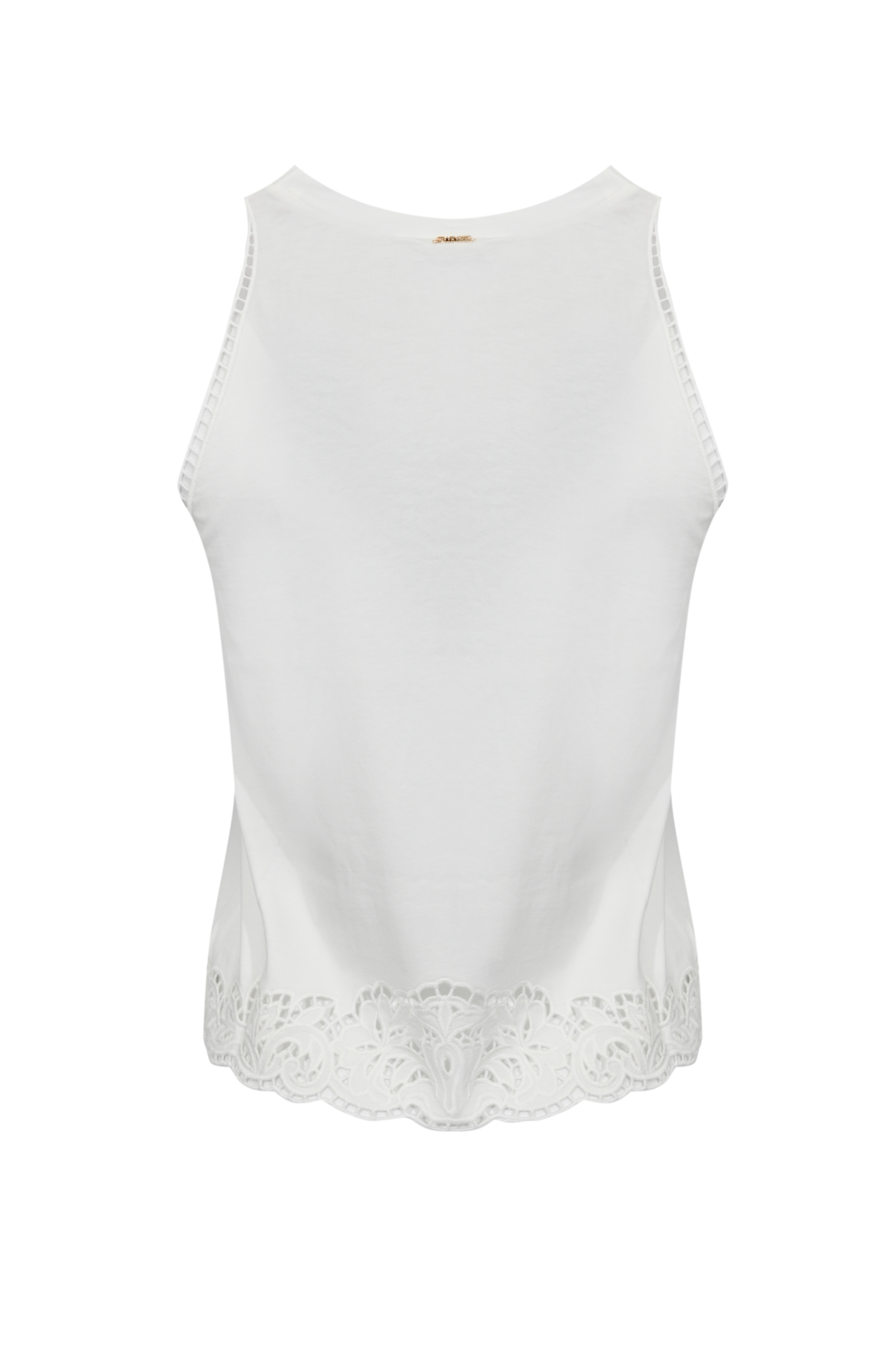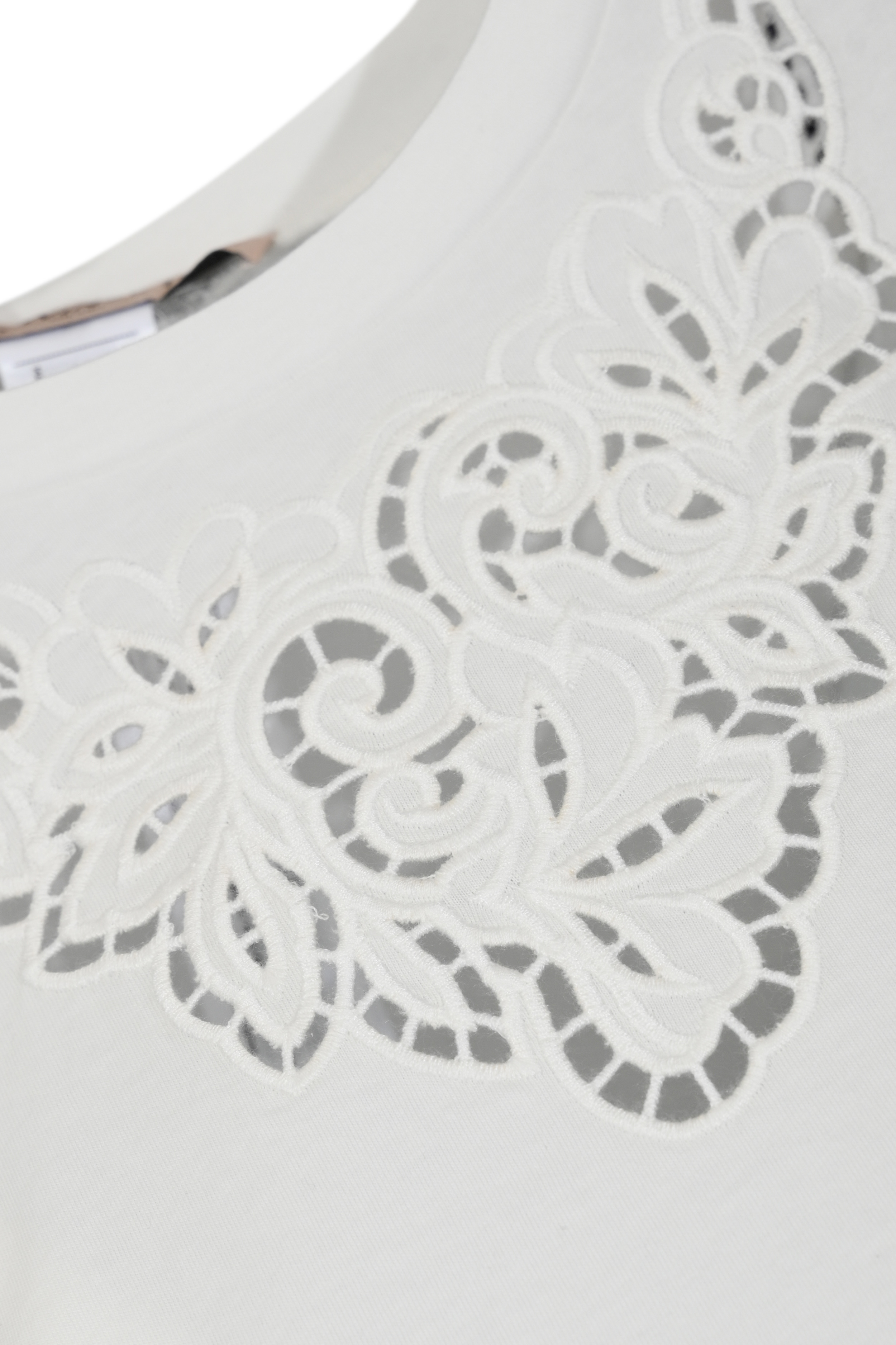 - Dettagli: ricamo intarsiato floreale su scollo e fondo, profili traforati, fondo sagomato
