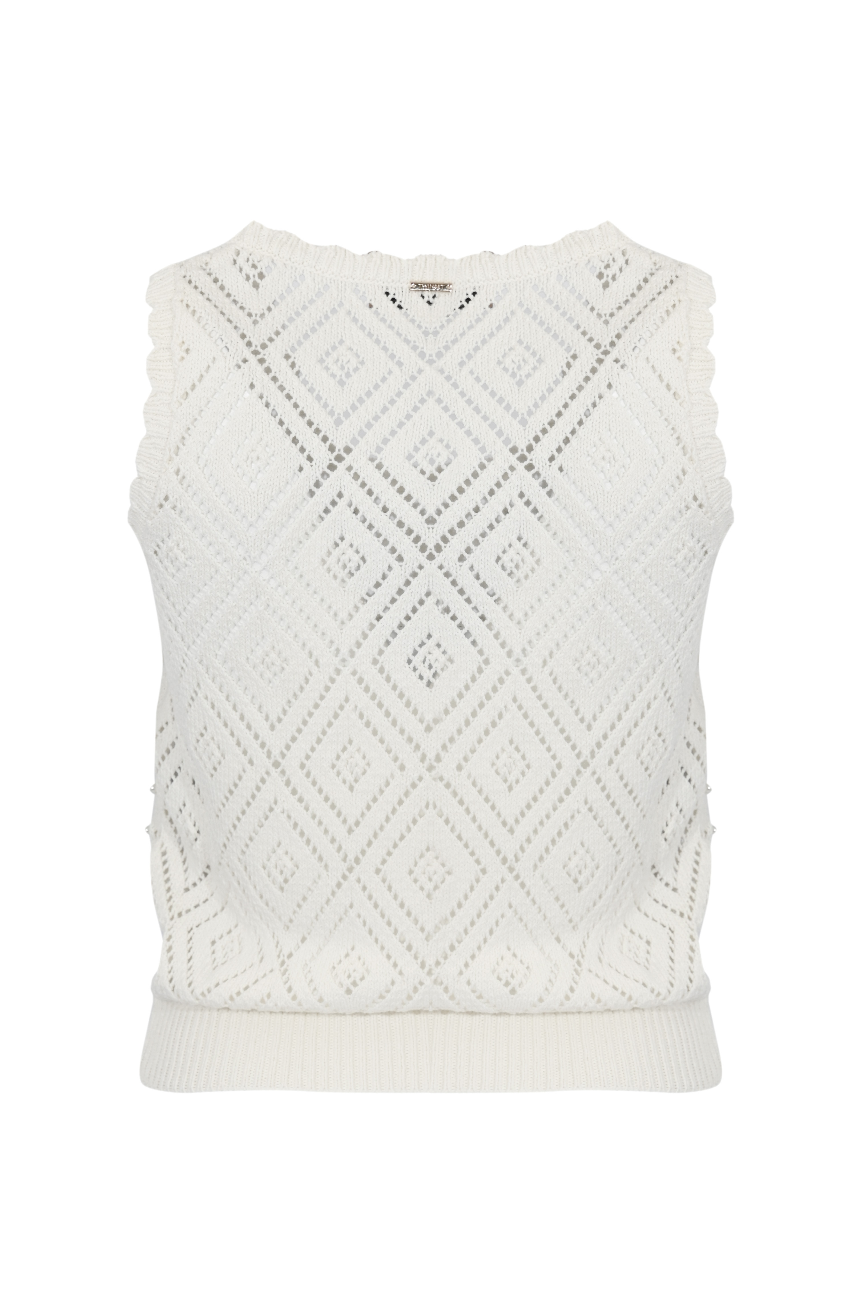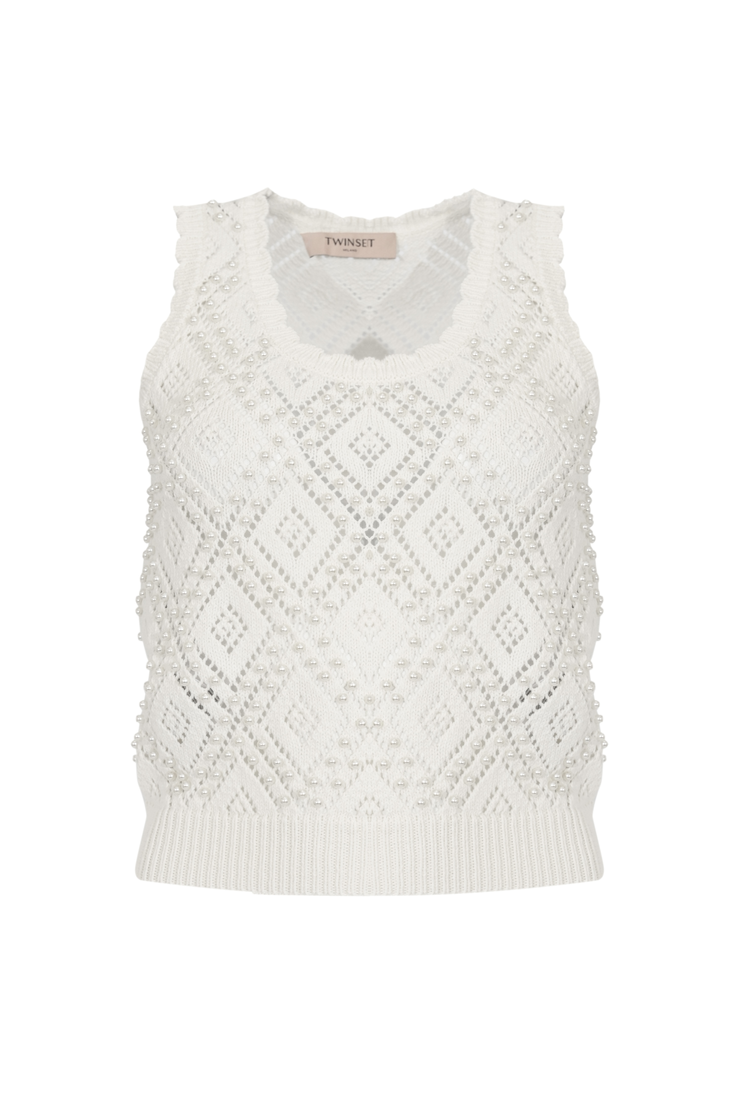 Top in maglia di cotone a losanghe con perle