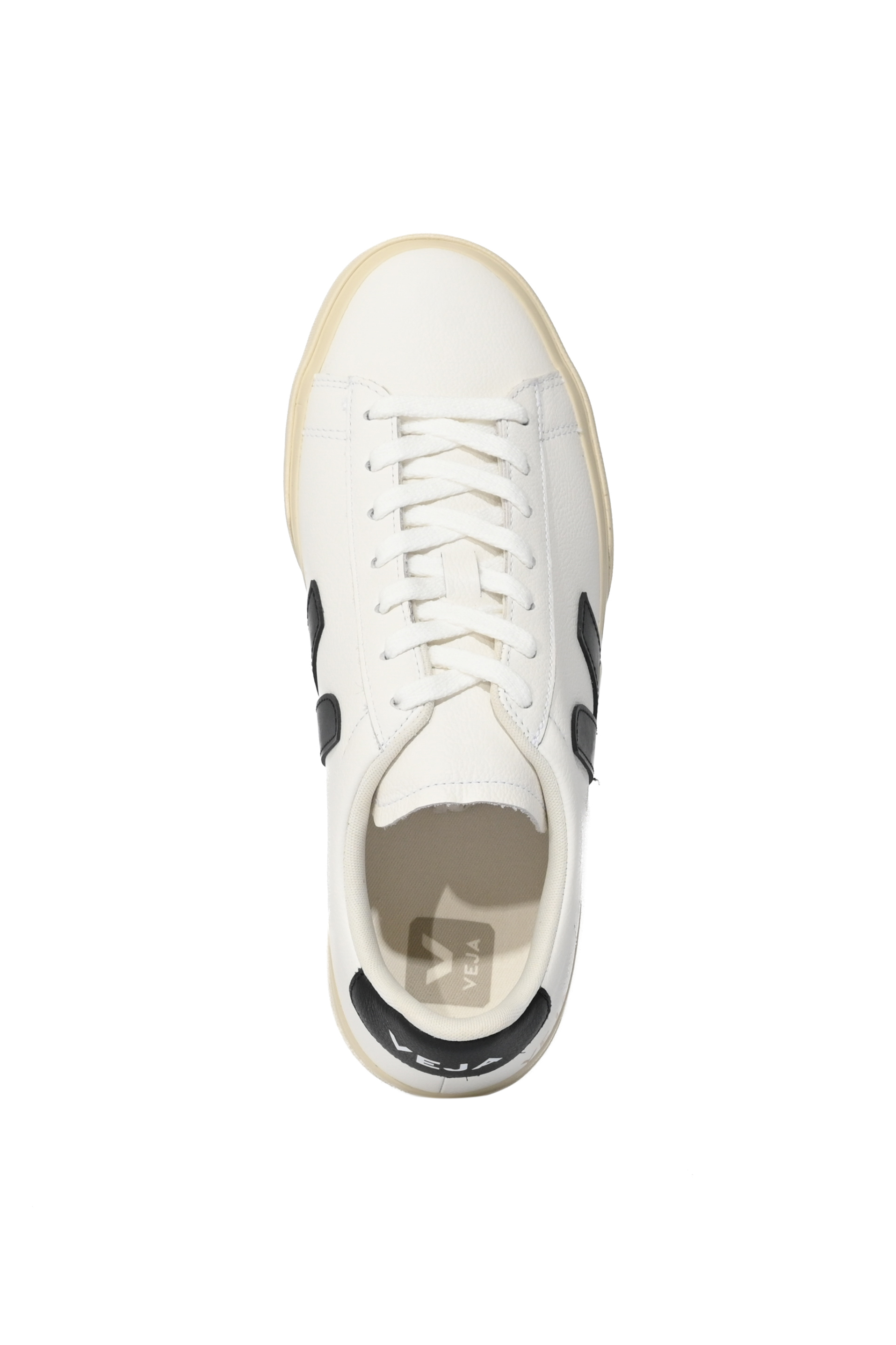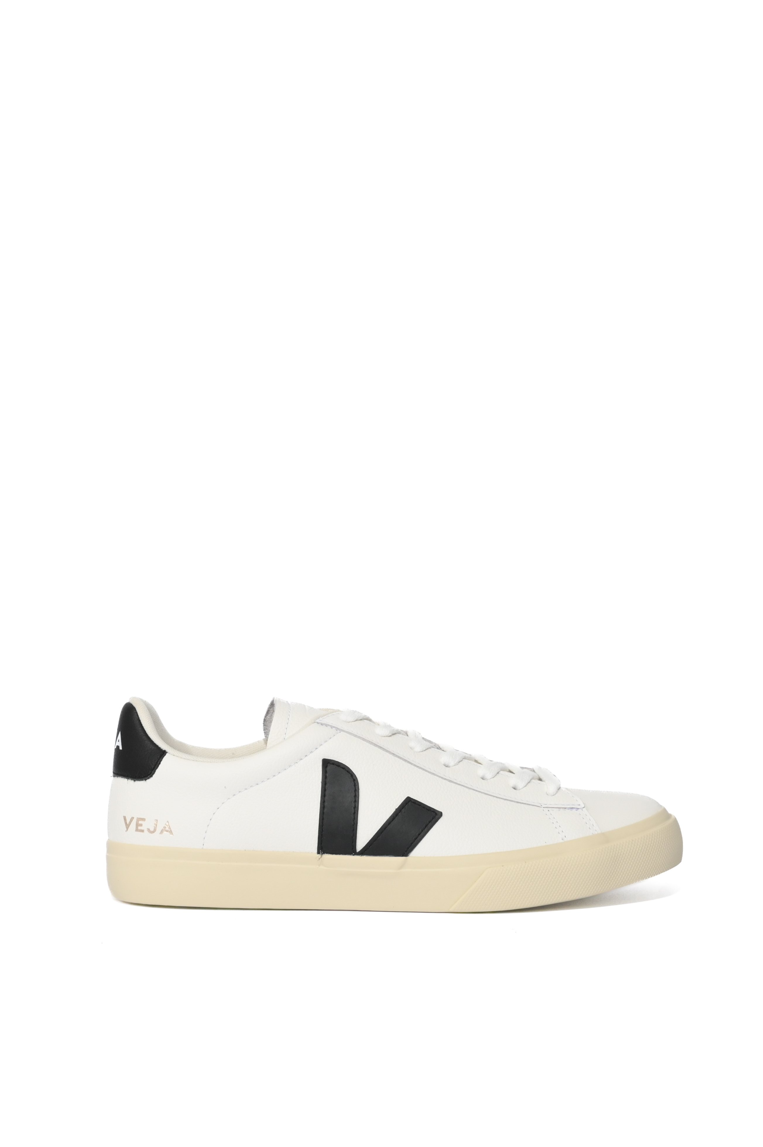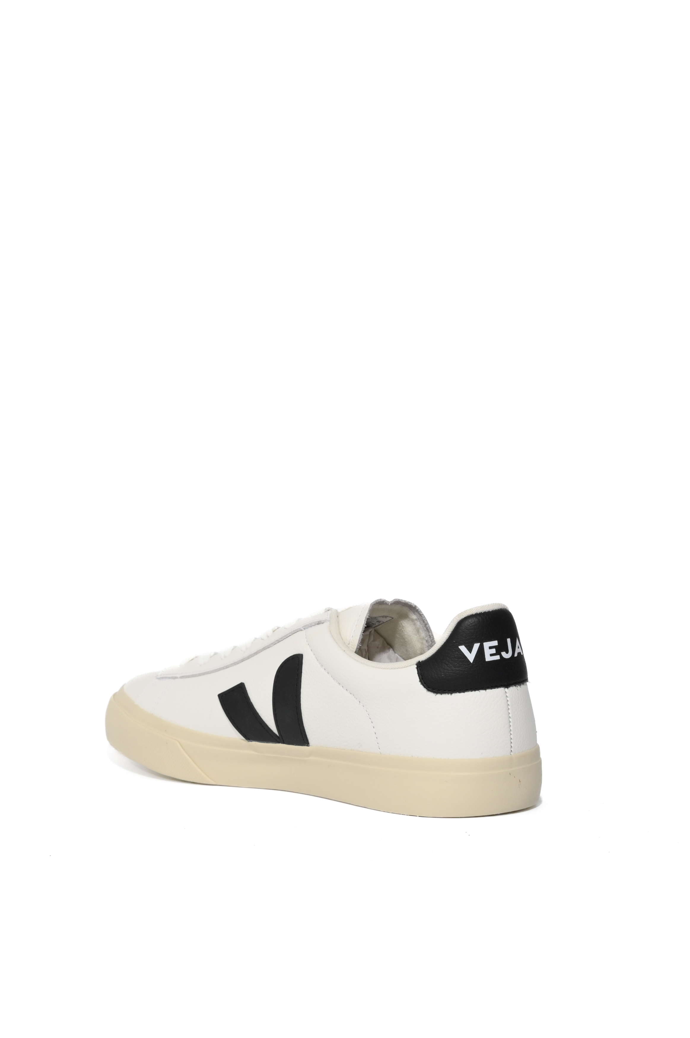 - Dettagli: talloncino posteriore in pelle nera con logo Veja stampato, logo Veja laterale dorato e cuciture tono su tono