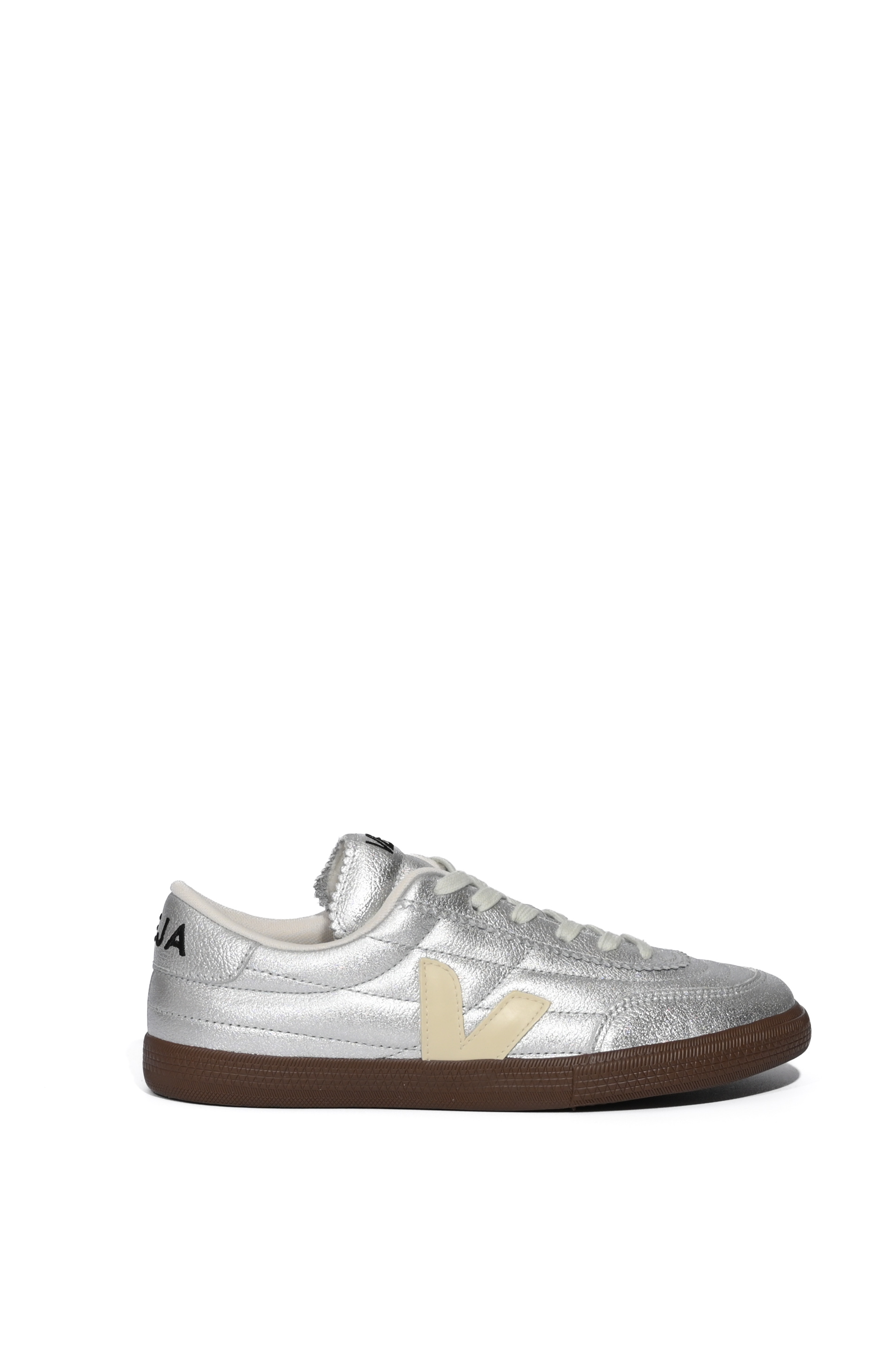 - Dettagli: logo laterale a V a contrasto, punta con cuciture decorative, tallone con logo Veja