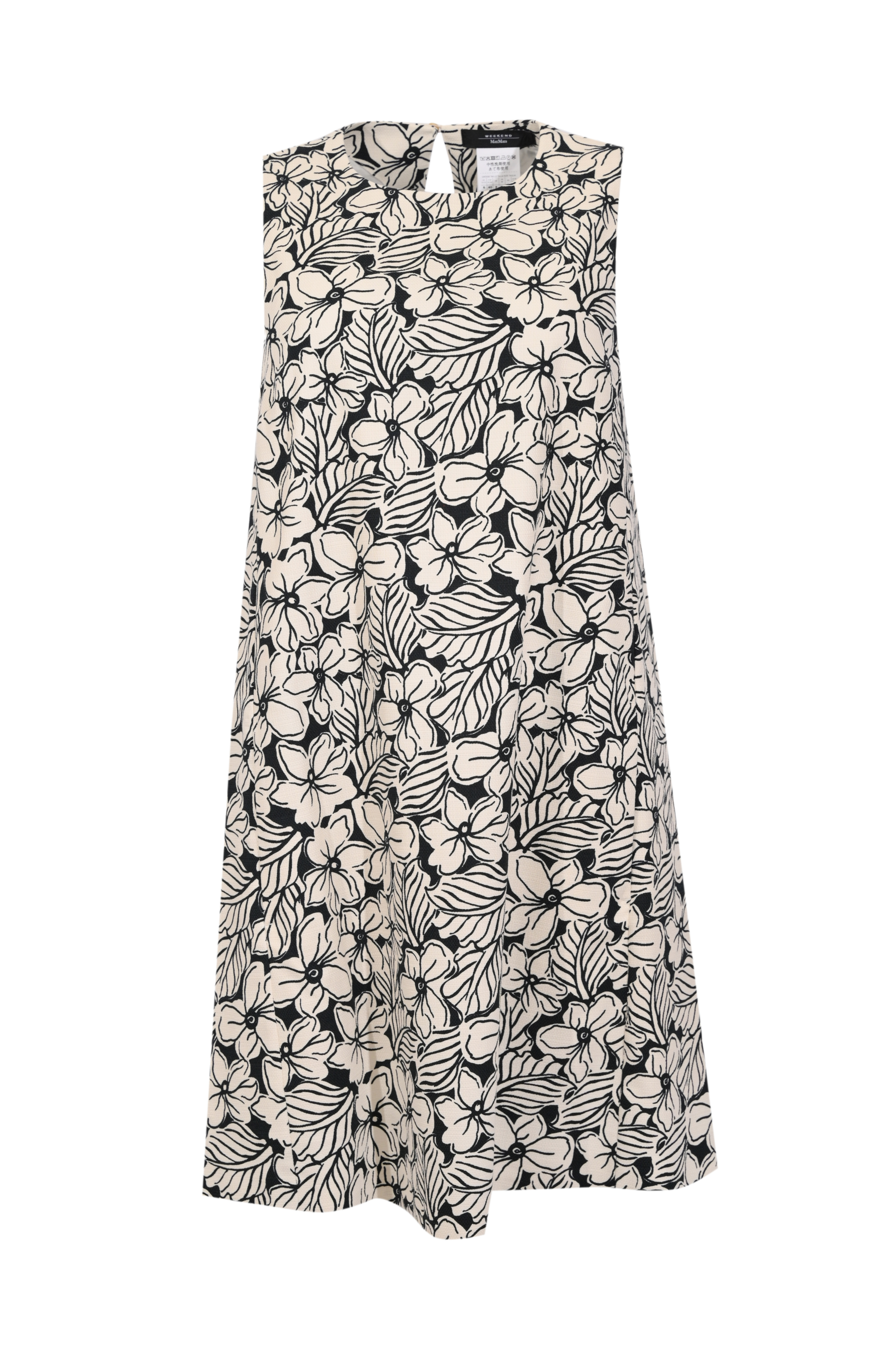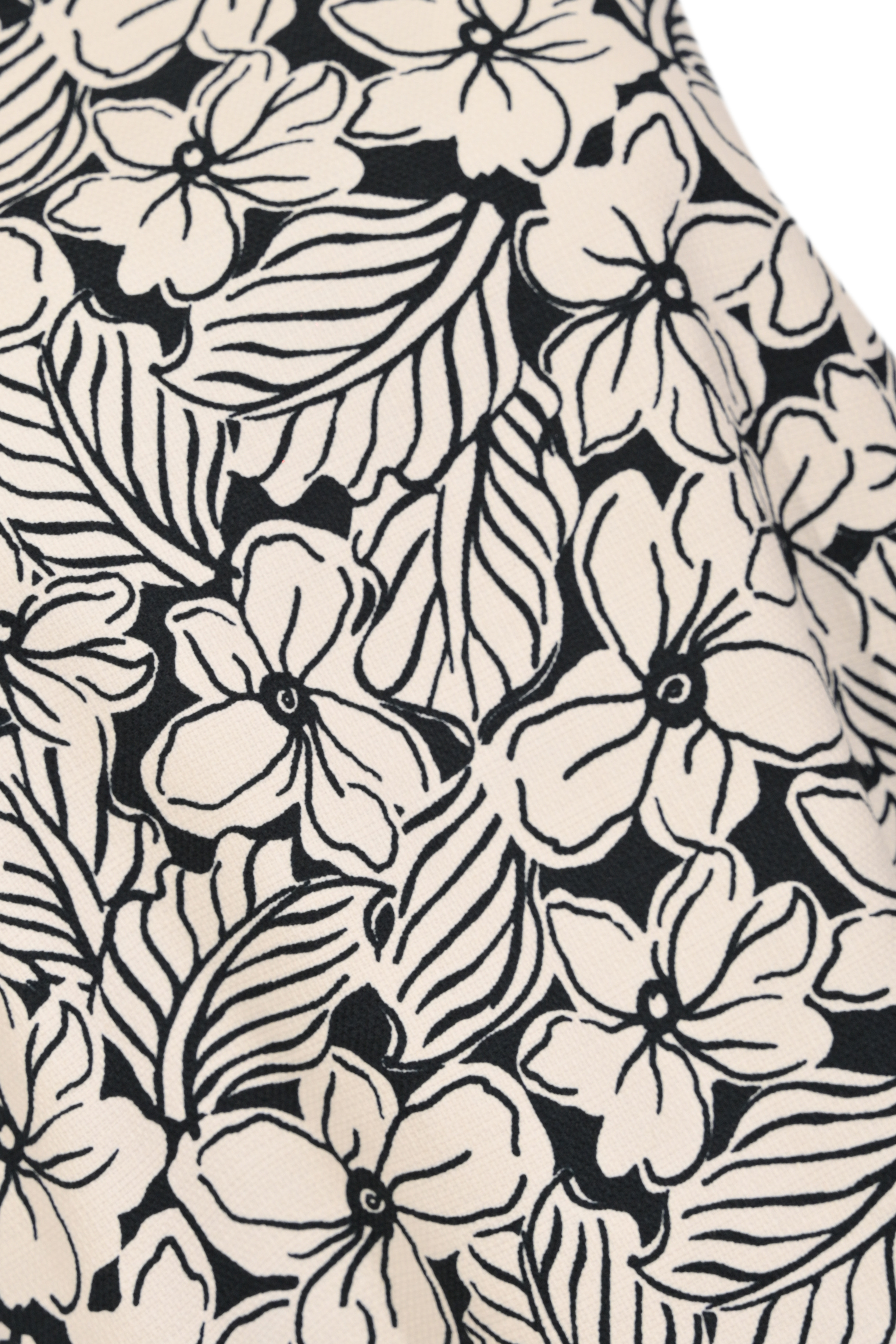 - Dettagli: linea A-line, pieghe morbide, motivo floreale all over
