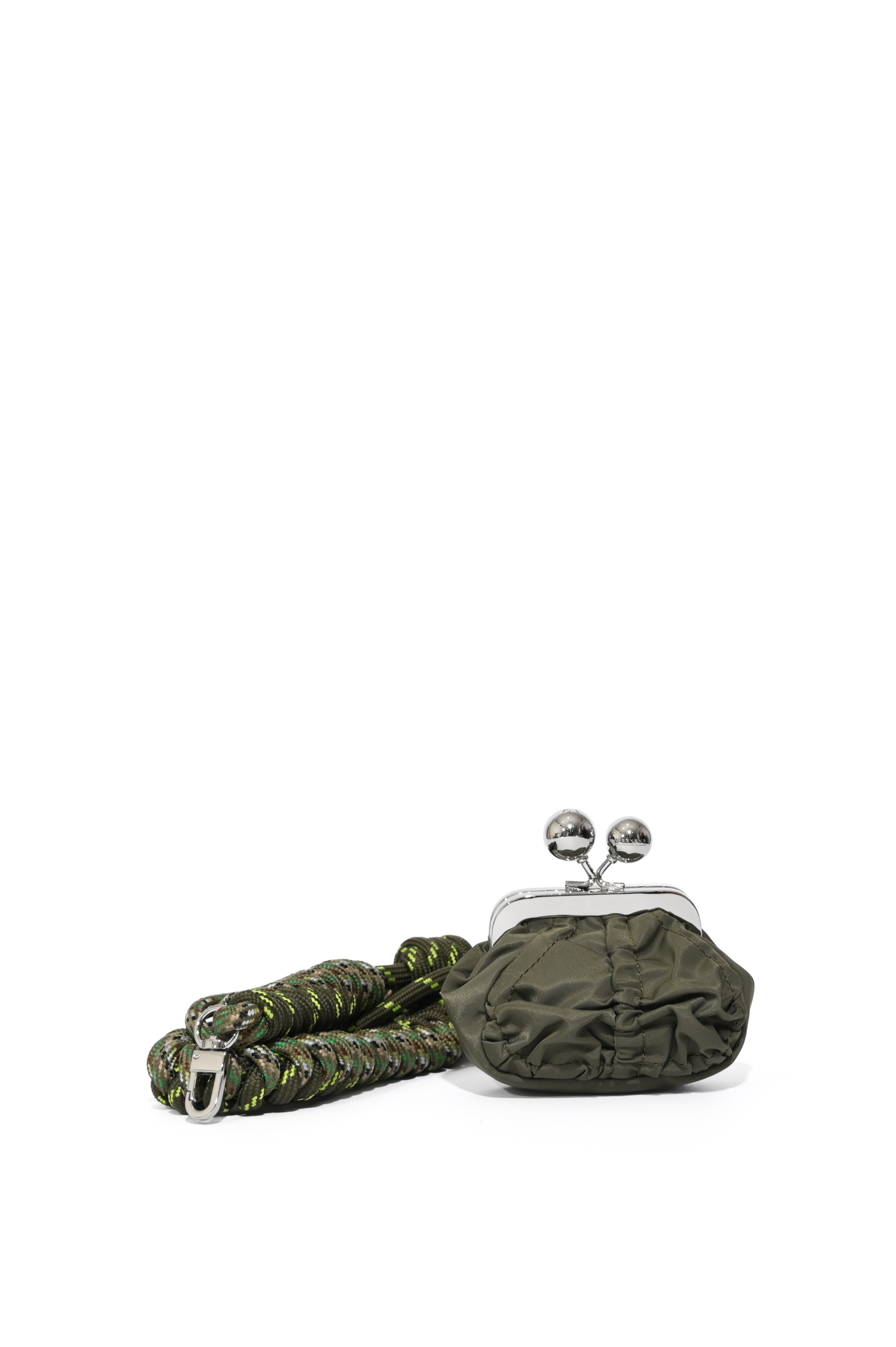 - Dettagli: arricciatura centrale, accessori metallici finitura argento, moschettone decorativo