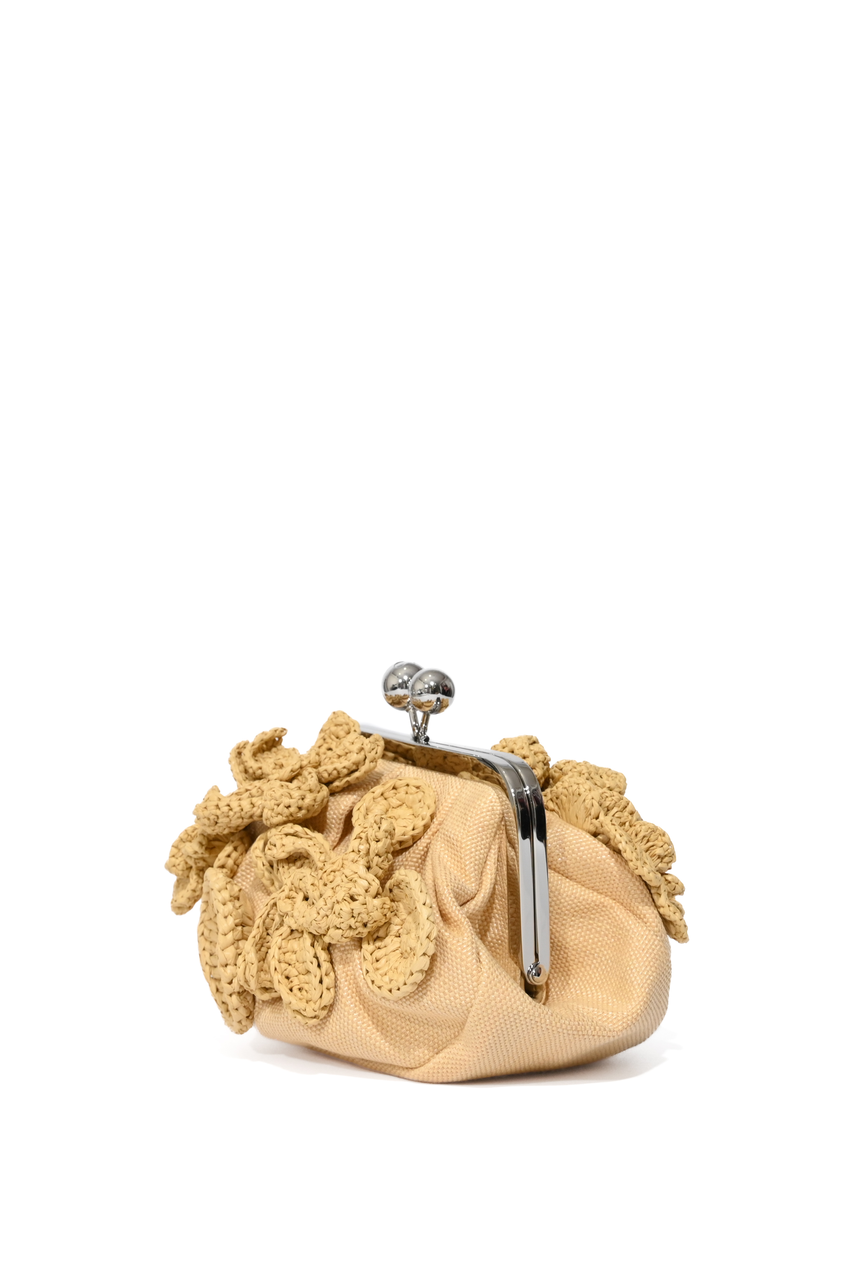 Borsa Pasticcino Bag WKACOMUNE Small effetto rafia con fiori Beige
