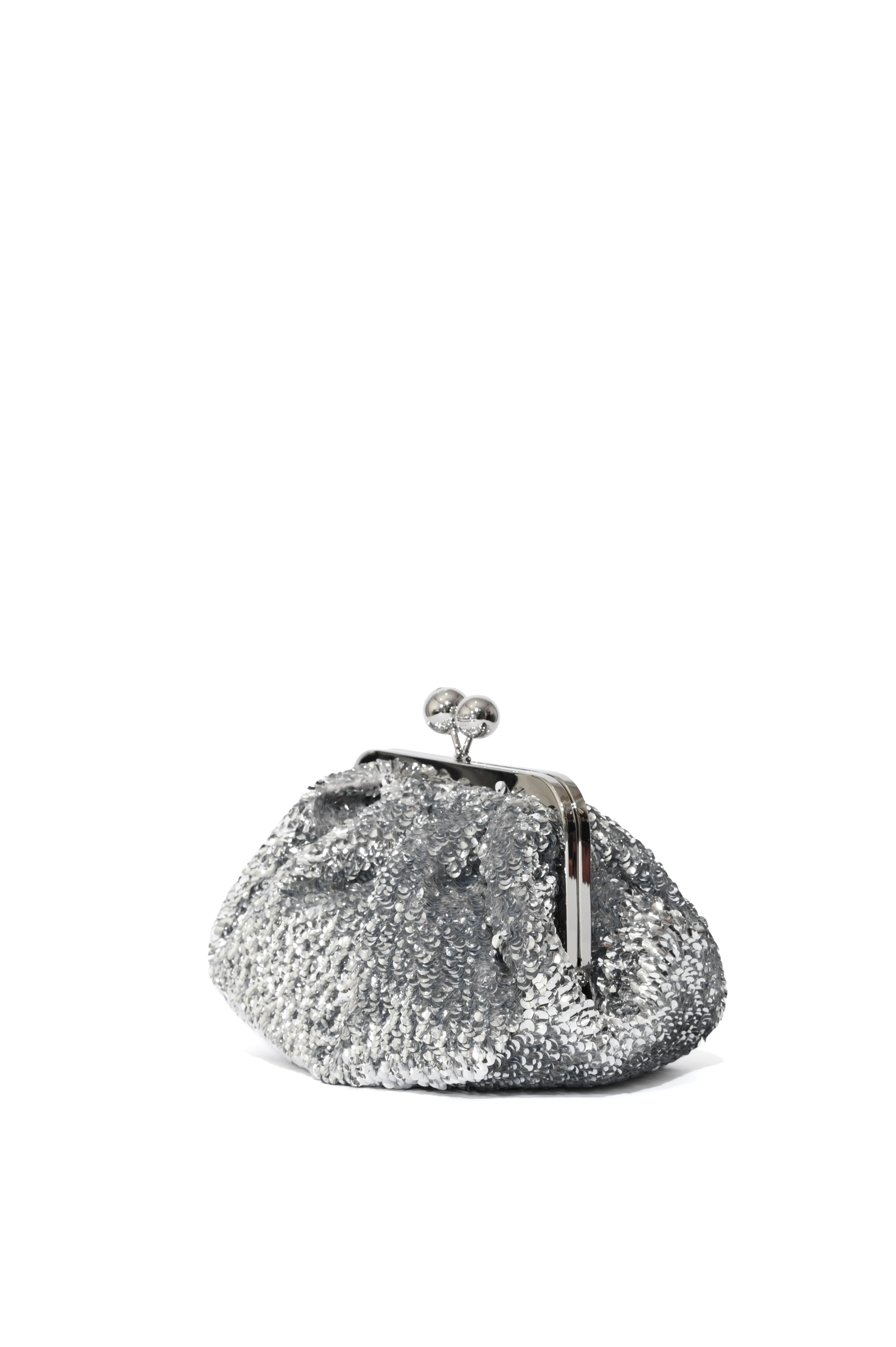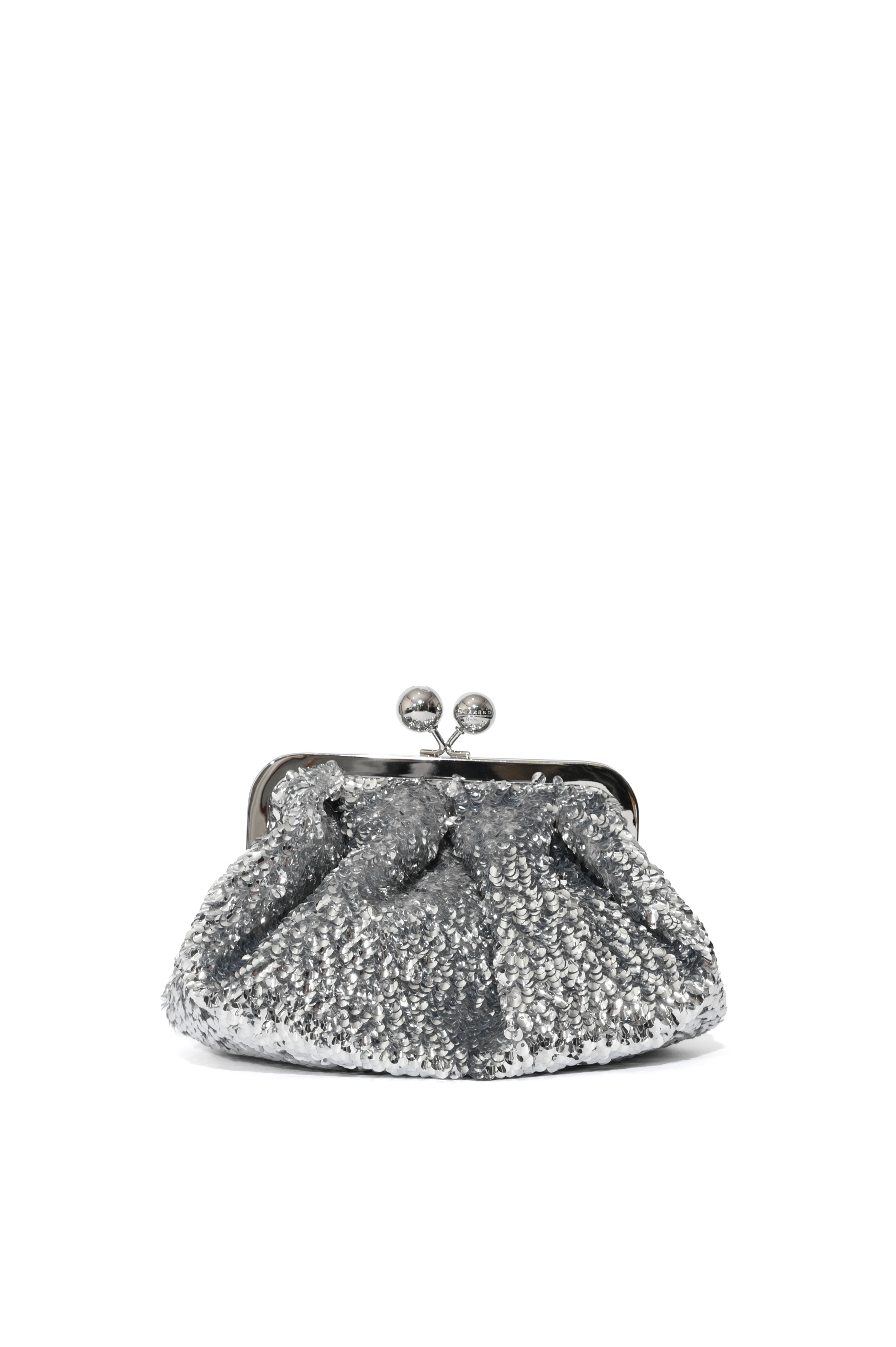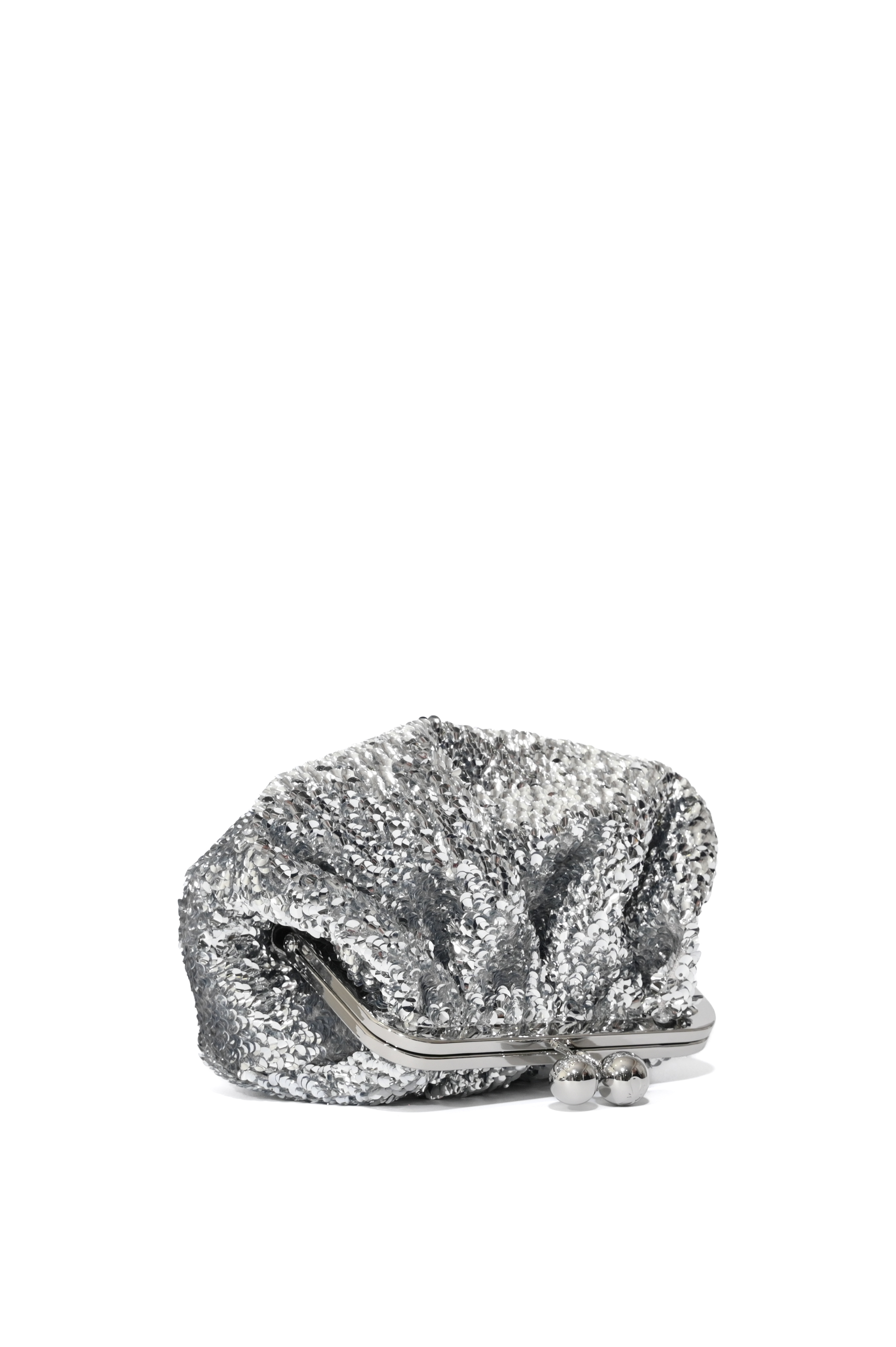 Borsa Pasticcino Bag WKATARGA Small in raso con paillettes Argento