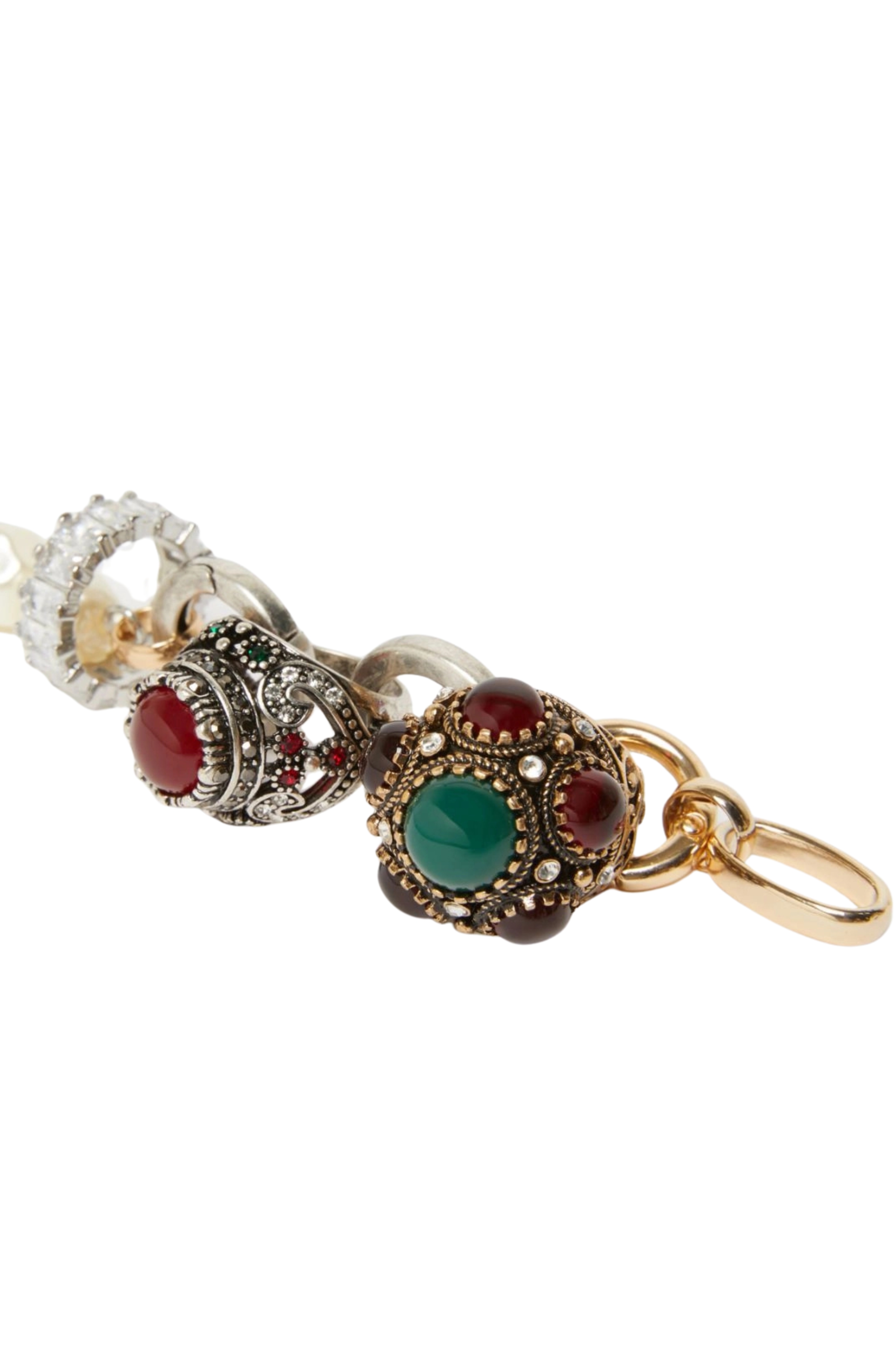 - Dettagli: bracciale composto da una catena di perle sintetiche e ciondoli decorativi ispirati a motivi vintage, arricchiti da pietre colorate e cristalli luminosi, ideale per donare un tocco sofisticato e retrò