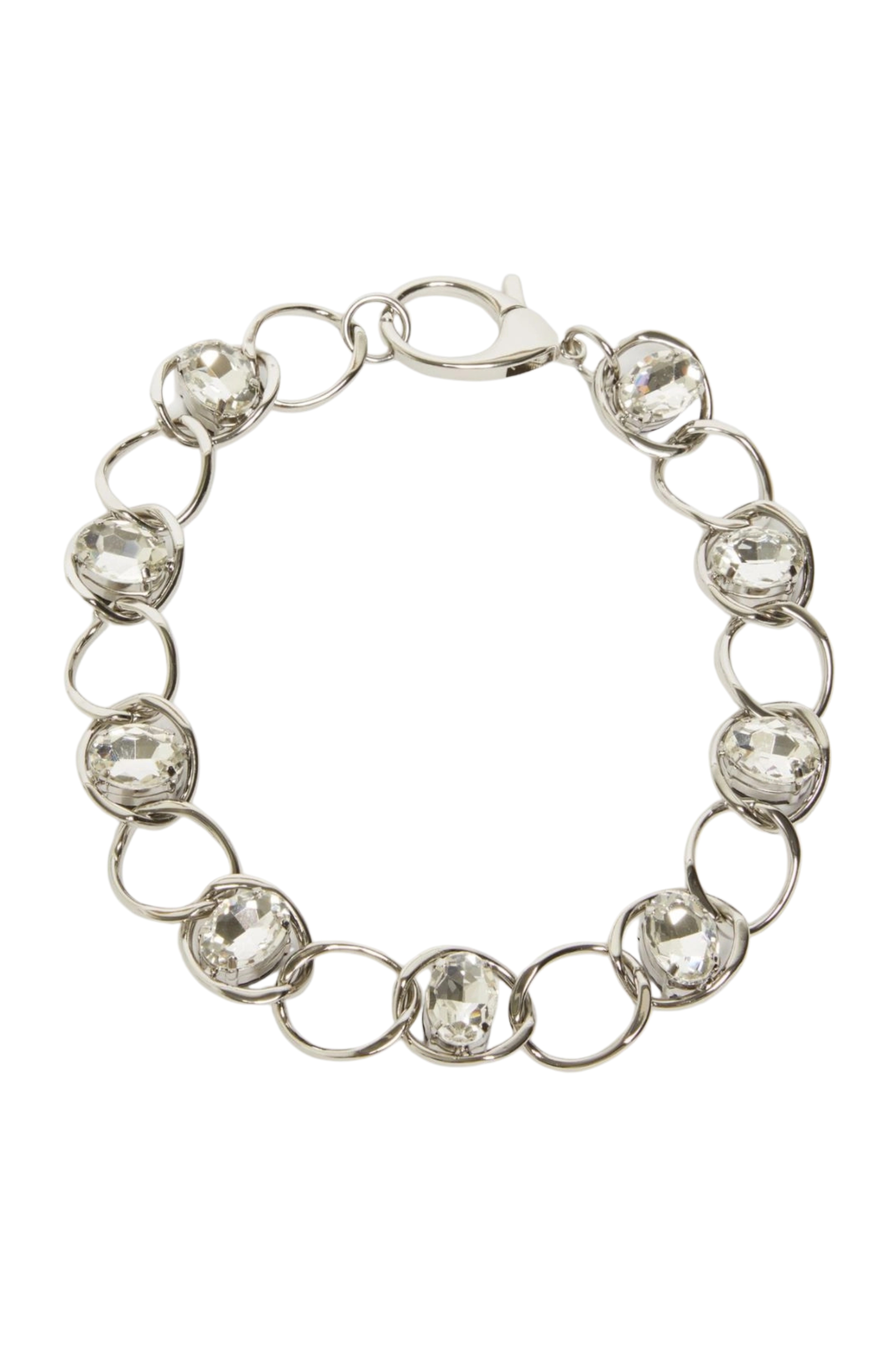 - Dettagli: collana girocollo composta da una catena ad anelli ovali che alterna strass chiari e scuri incastonati in montature arrotondate. Design elegante e contemporaneo, perfetto per impreziosire look da giorno e da sera