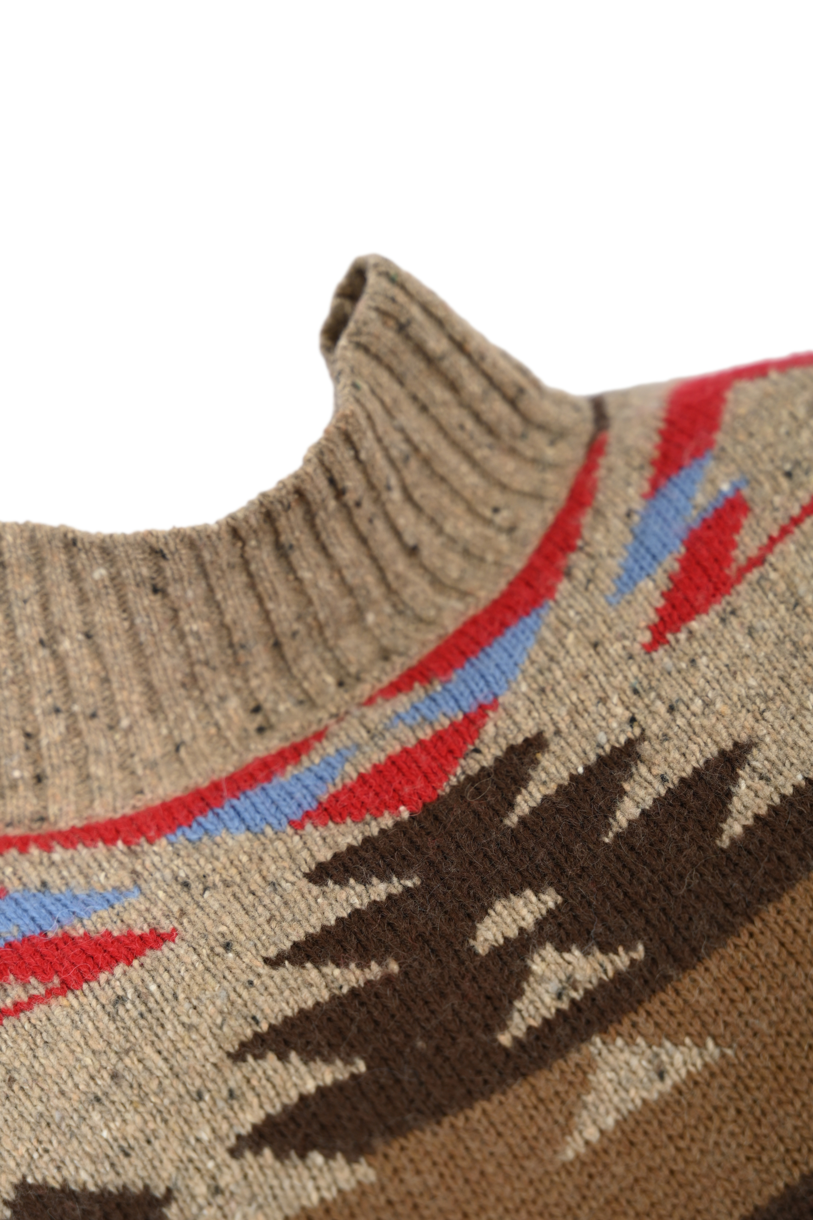 - Dettagli: lavorazione jacquard con motivi geometrici, bordi a costine, texture calda e avvolgente