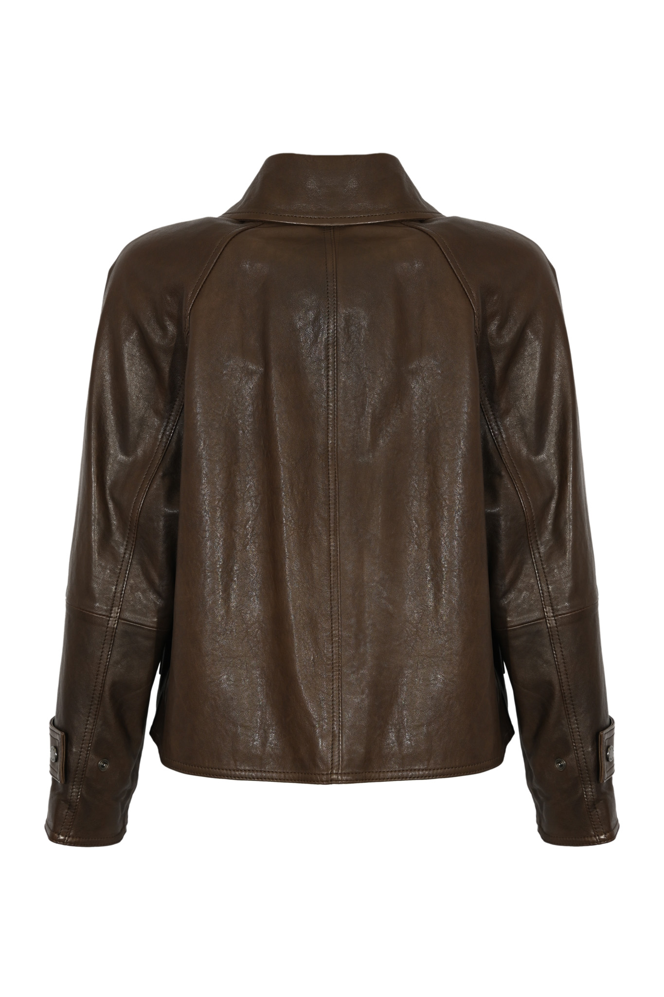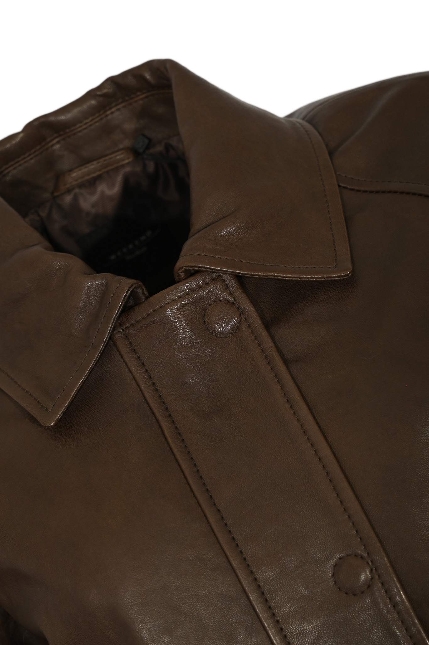 - Dettagli: cuciture a vista, polsini regolabili, finitura lucida della pelle