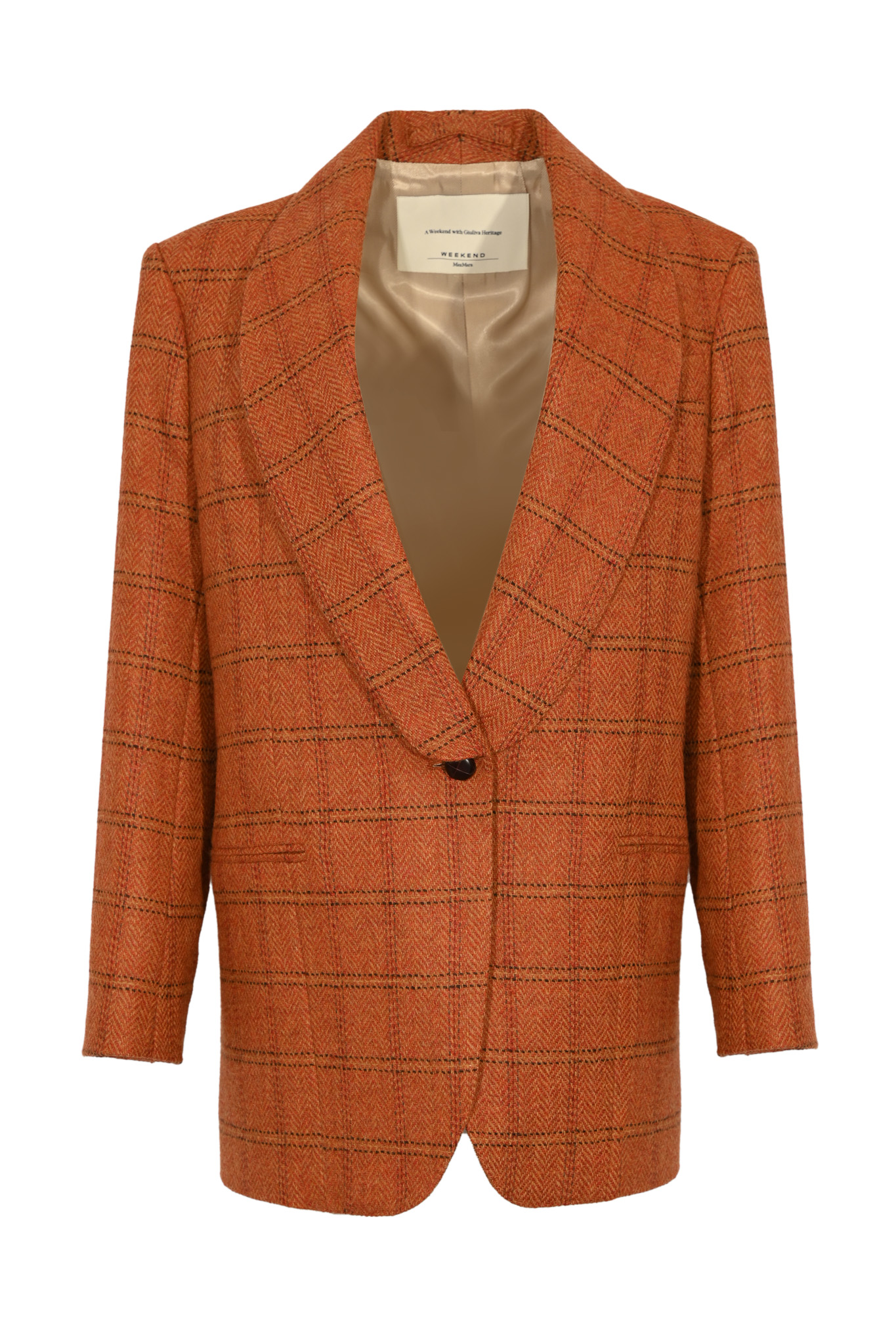 - Fantasia: check a quadri su base arancio con lavorazione spigata