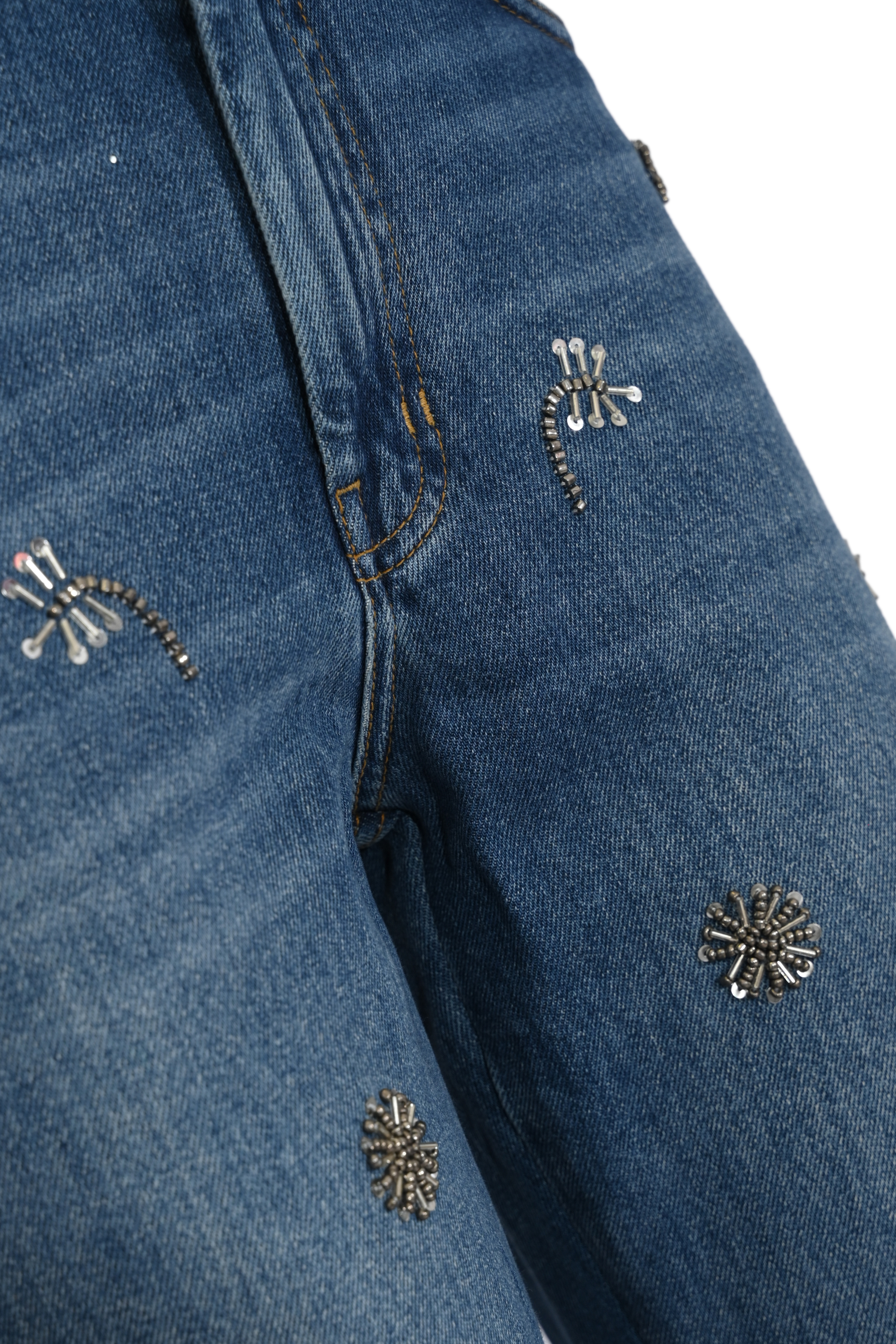 - Fantasia: denim con ricami gioiello applicati