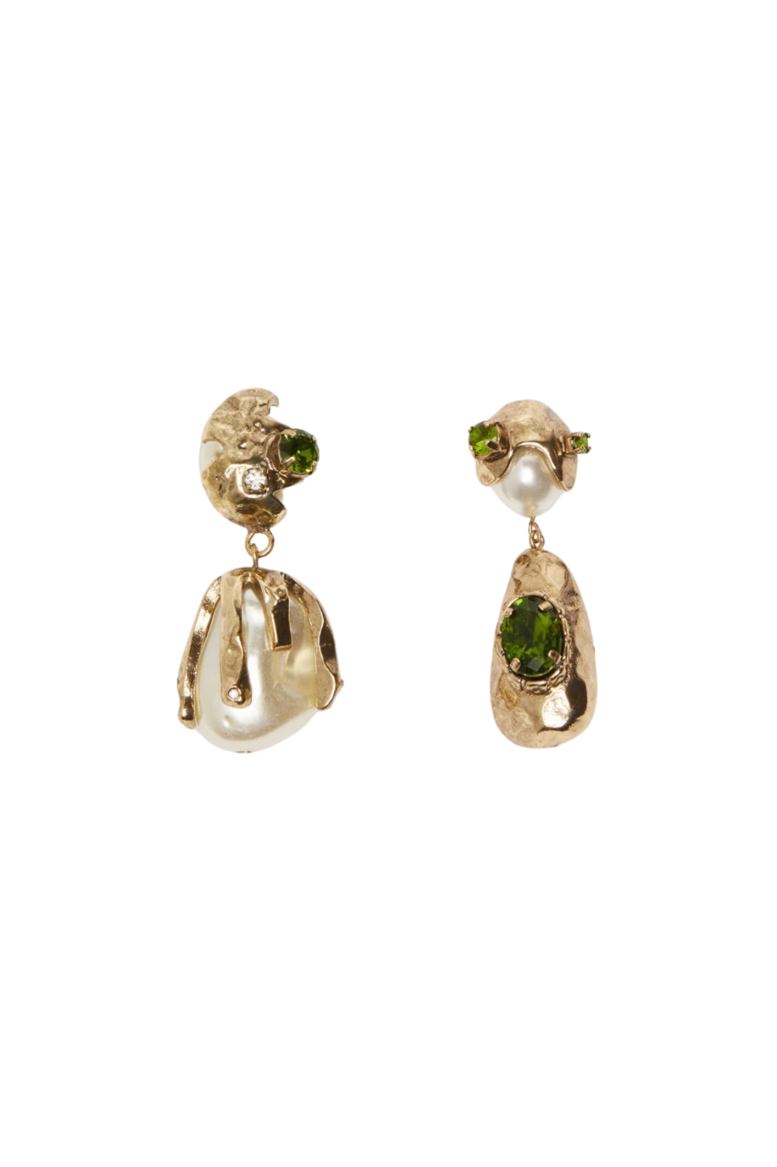 - Dettagli: orecchini pendenti dalla forma irregolare, decorati con perle e cristalli incastonati, caratterizzati da un design scultoreo e contemporaneo che illumina il viso con eleganza