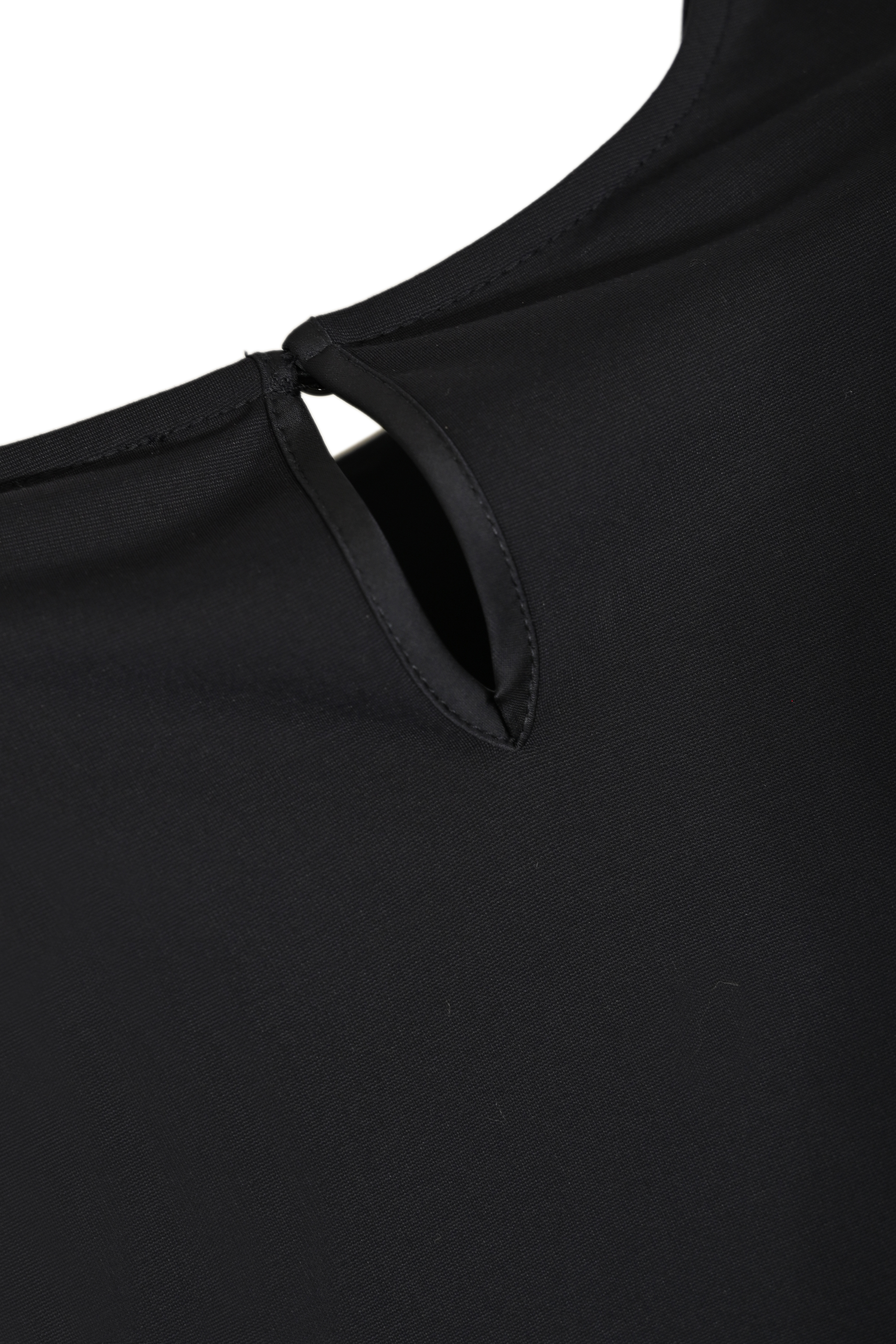 - Collo: girocollo con piccolo bottone sul retro