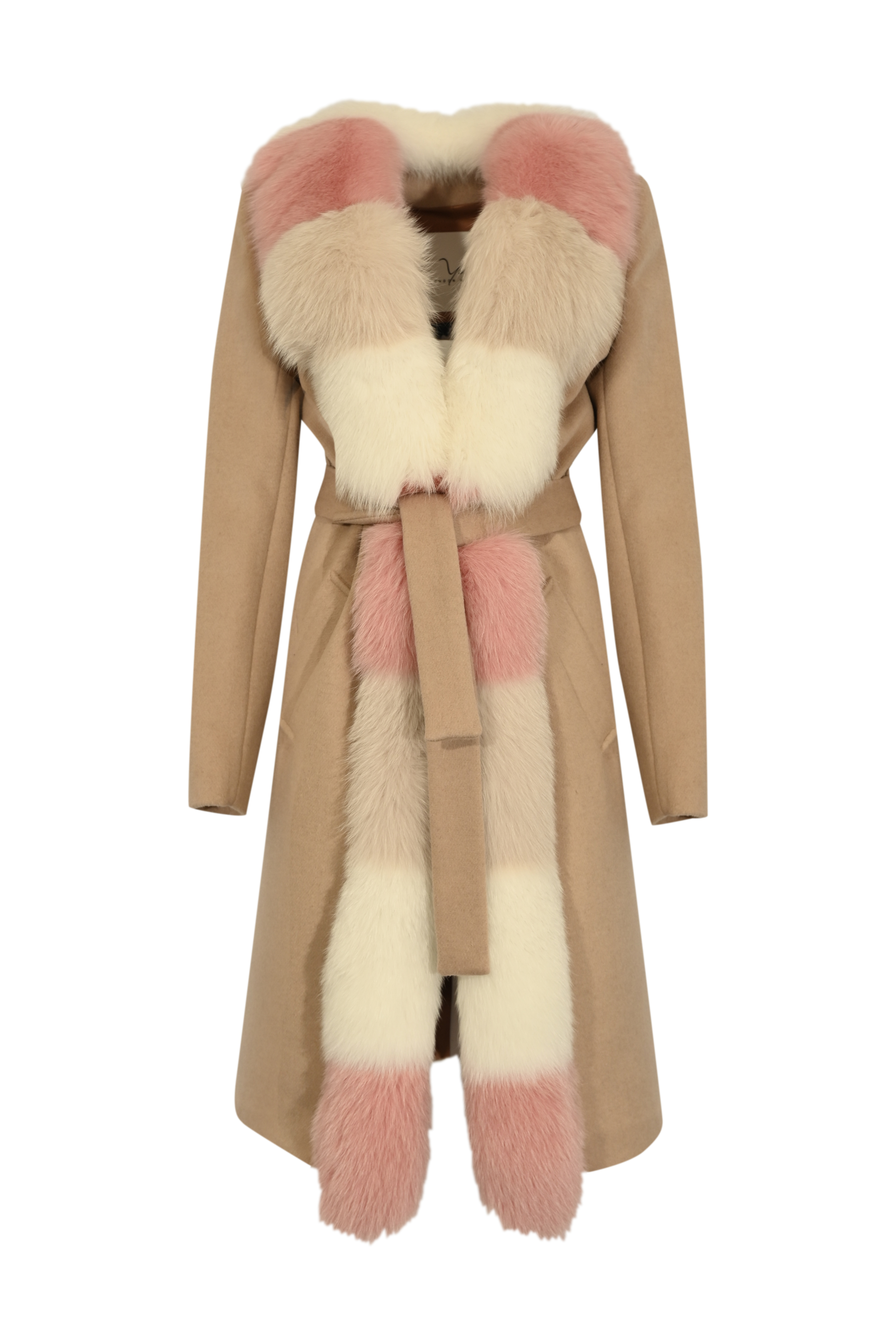 Cappotto CD1206 in misto lana con pelliccia in volpe