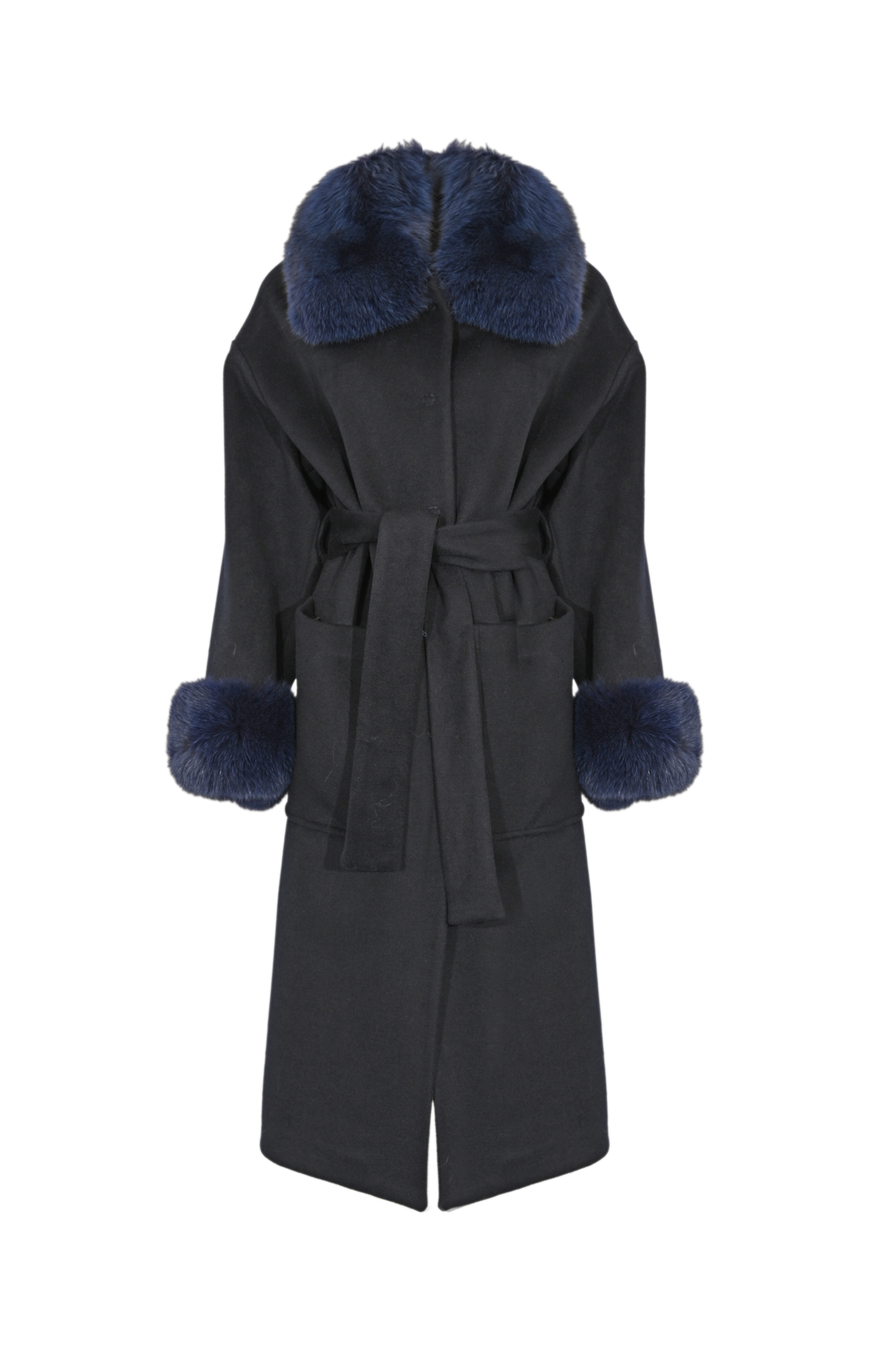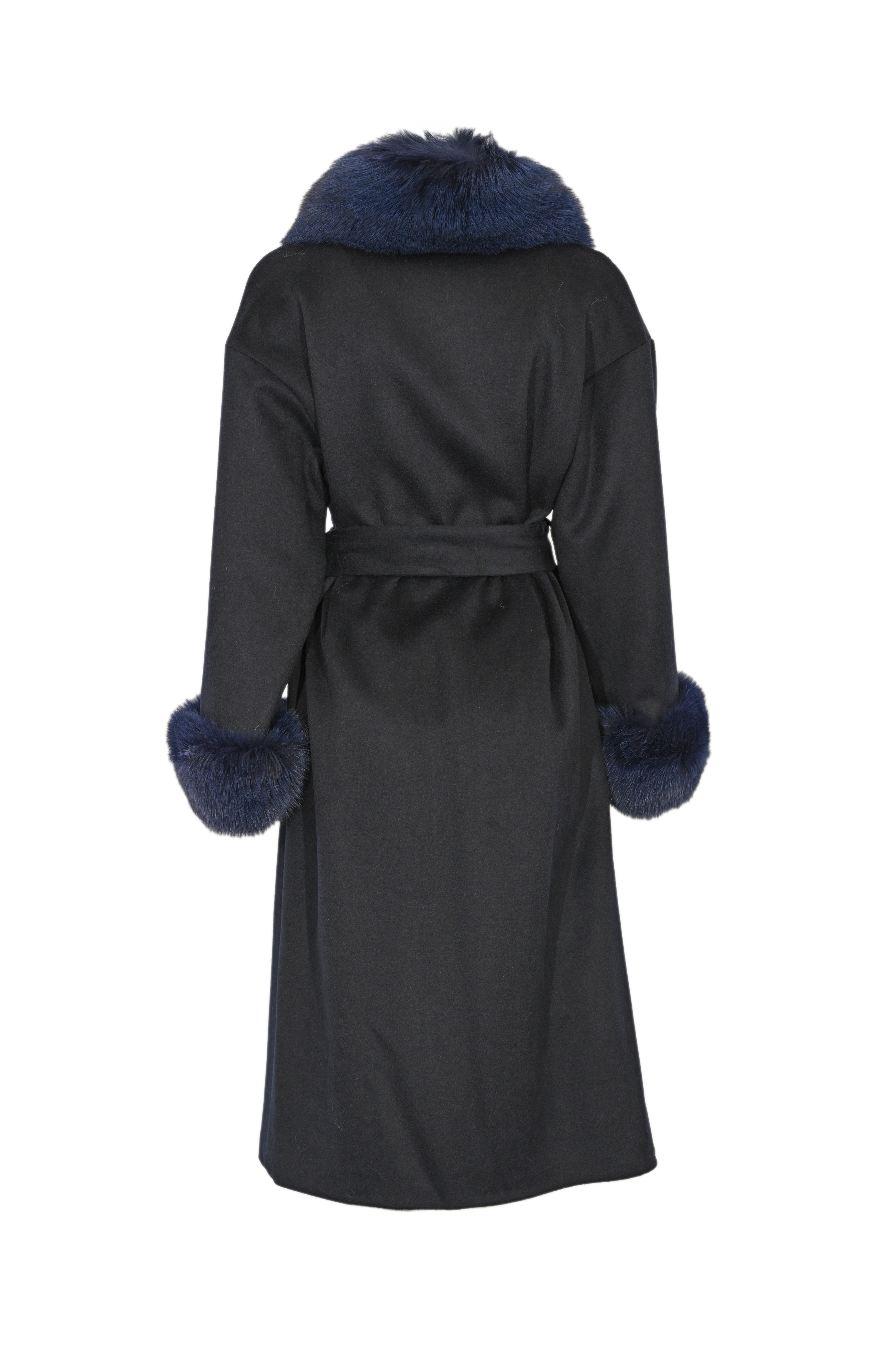 Cappotto CD1211 in misto lana con pelliccia di volpe Blu