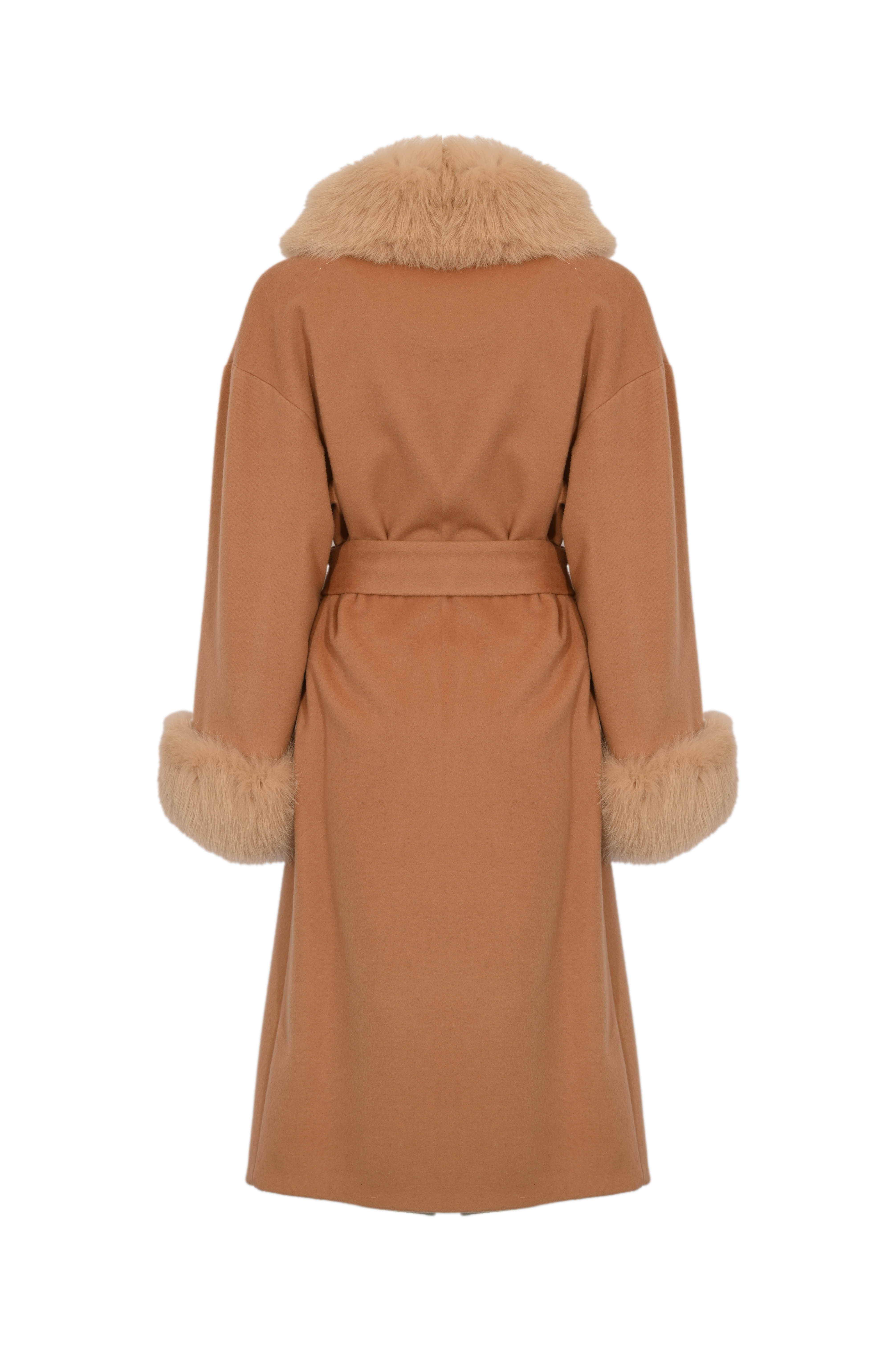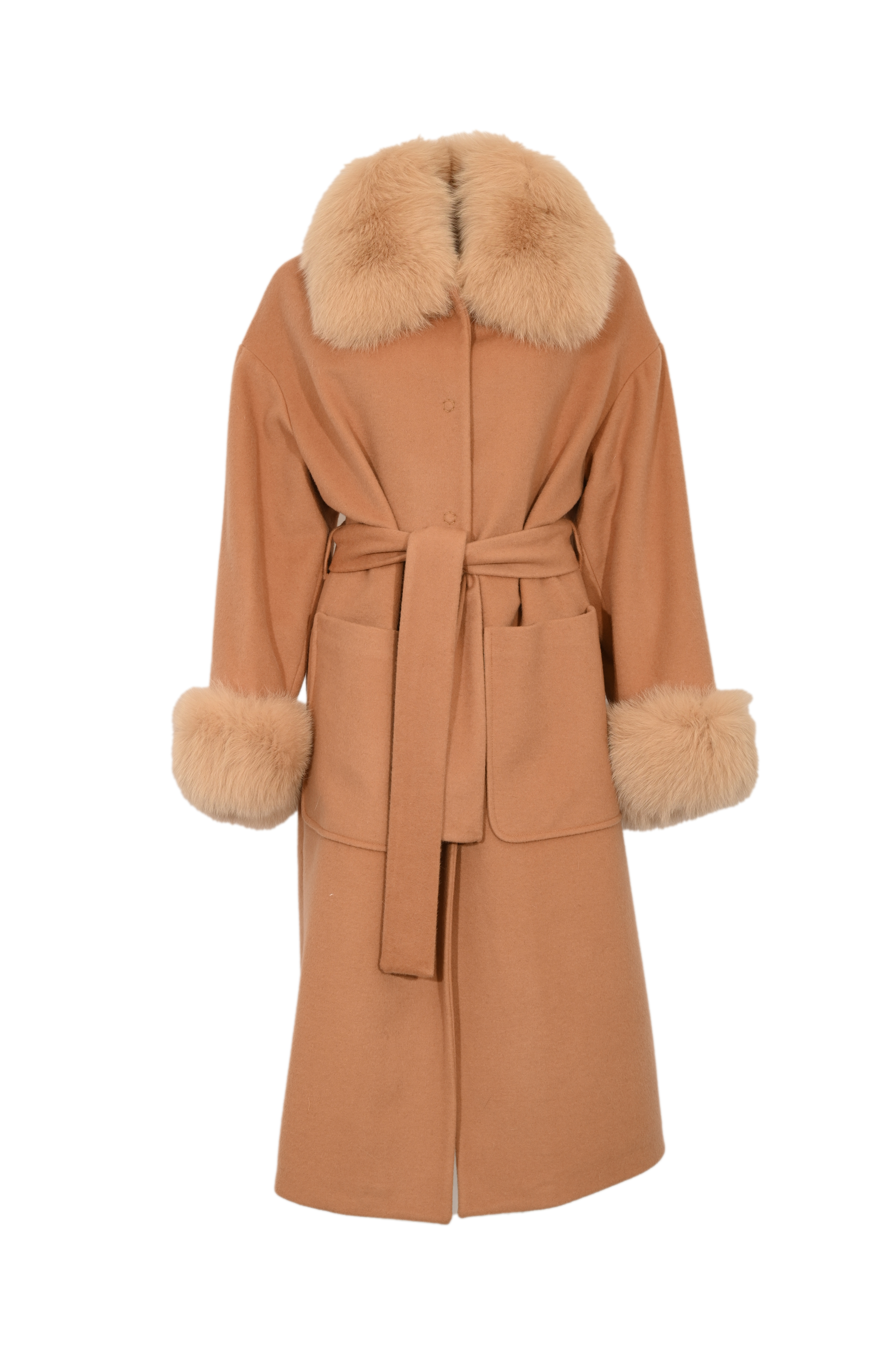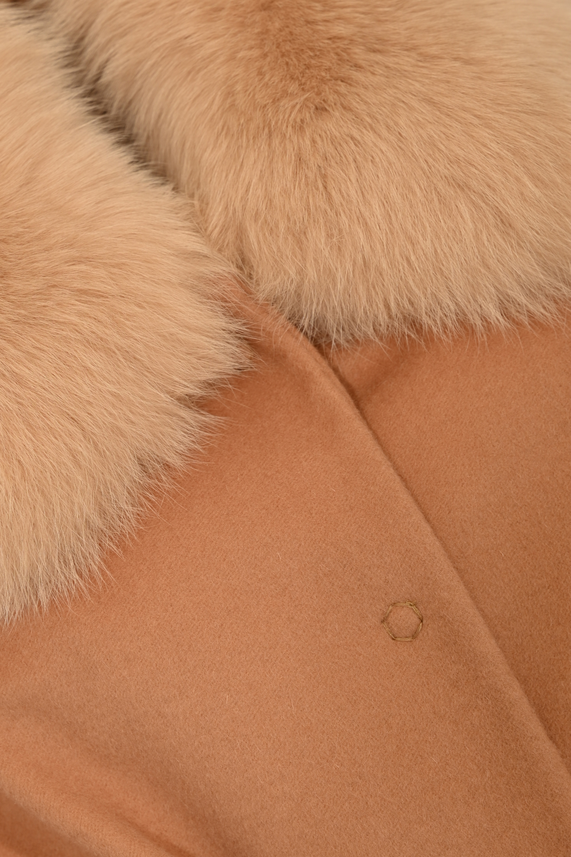 Cappotto CD1211 in misto lana con pelliccia di volpe Cammello