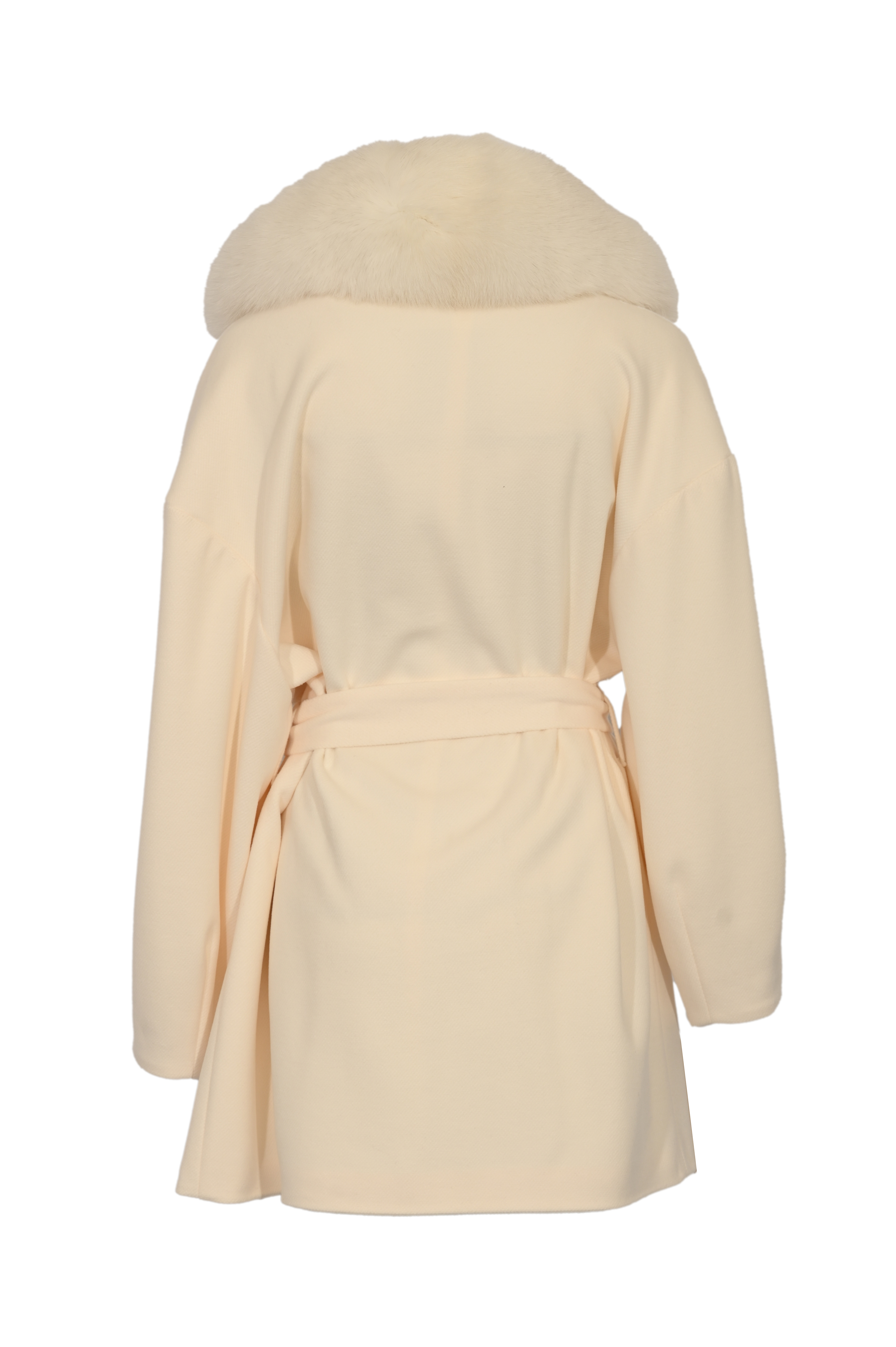 - Dettagli: collo e profili in pelliccia, taglio corto con cintura coordinata per valorizzare la silhouette, interno foderato con tessuto satinato