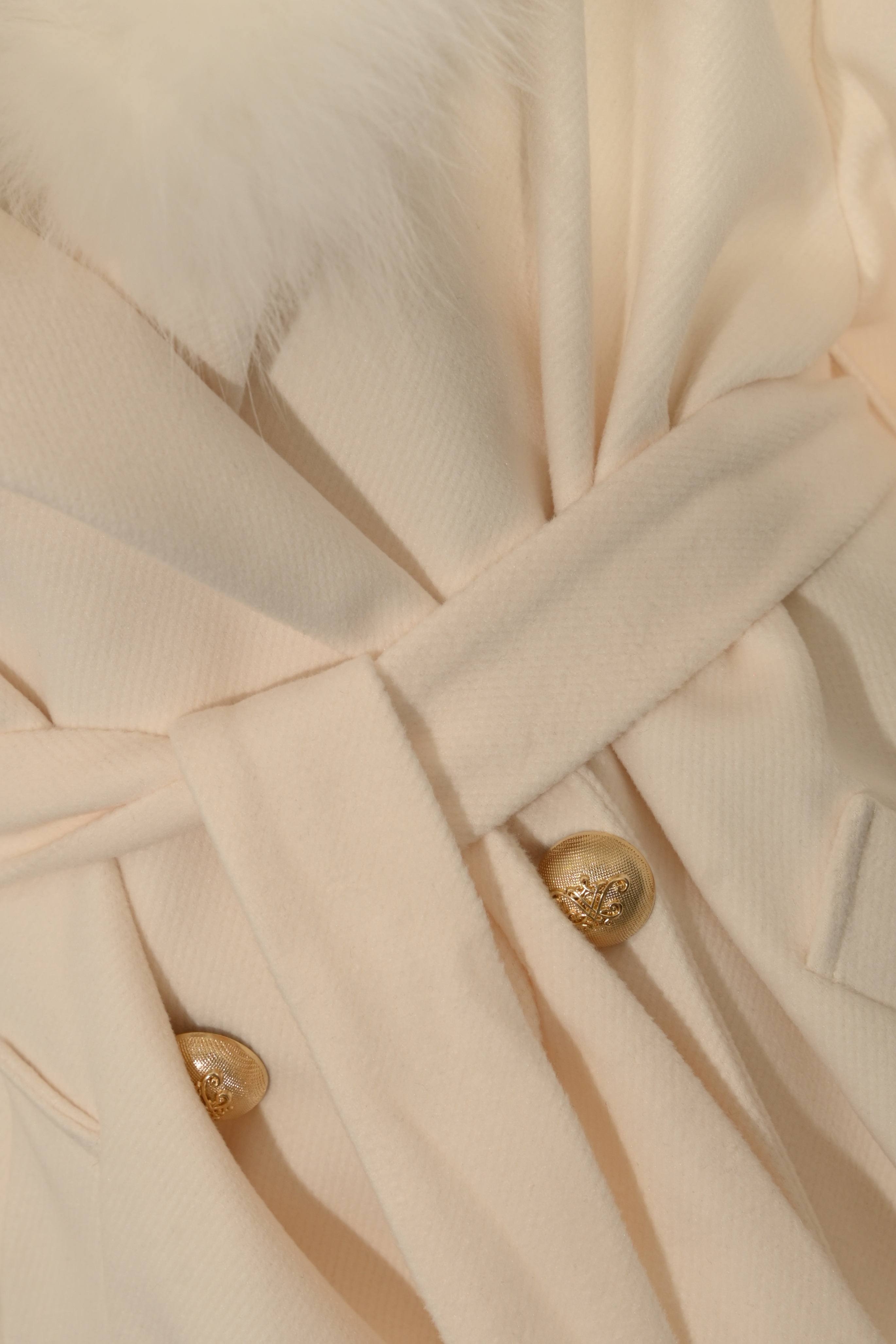 Cappotto CD1219 effetto lana e pelliccia di volpe Bianco