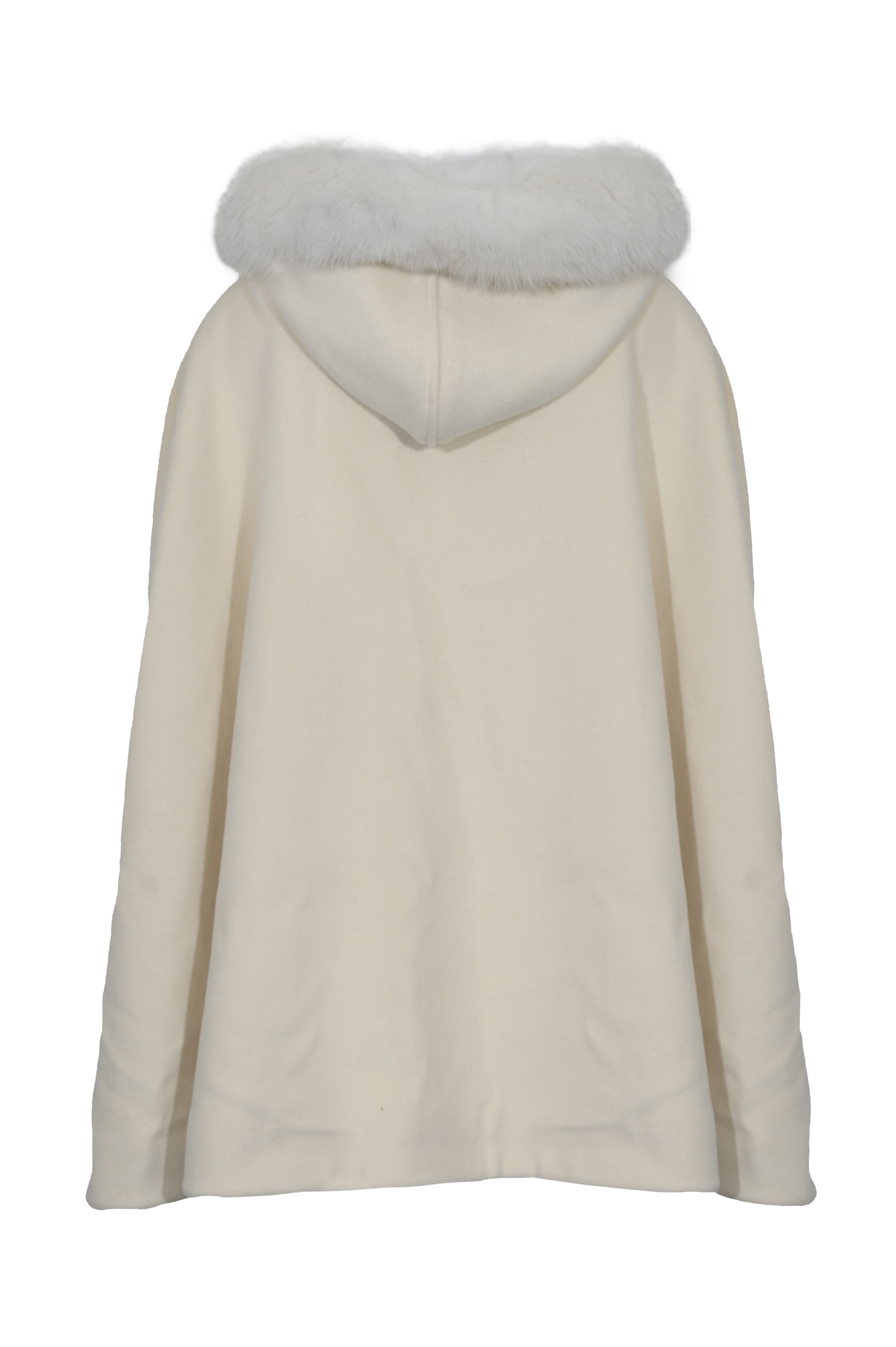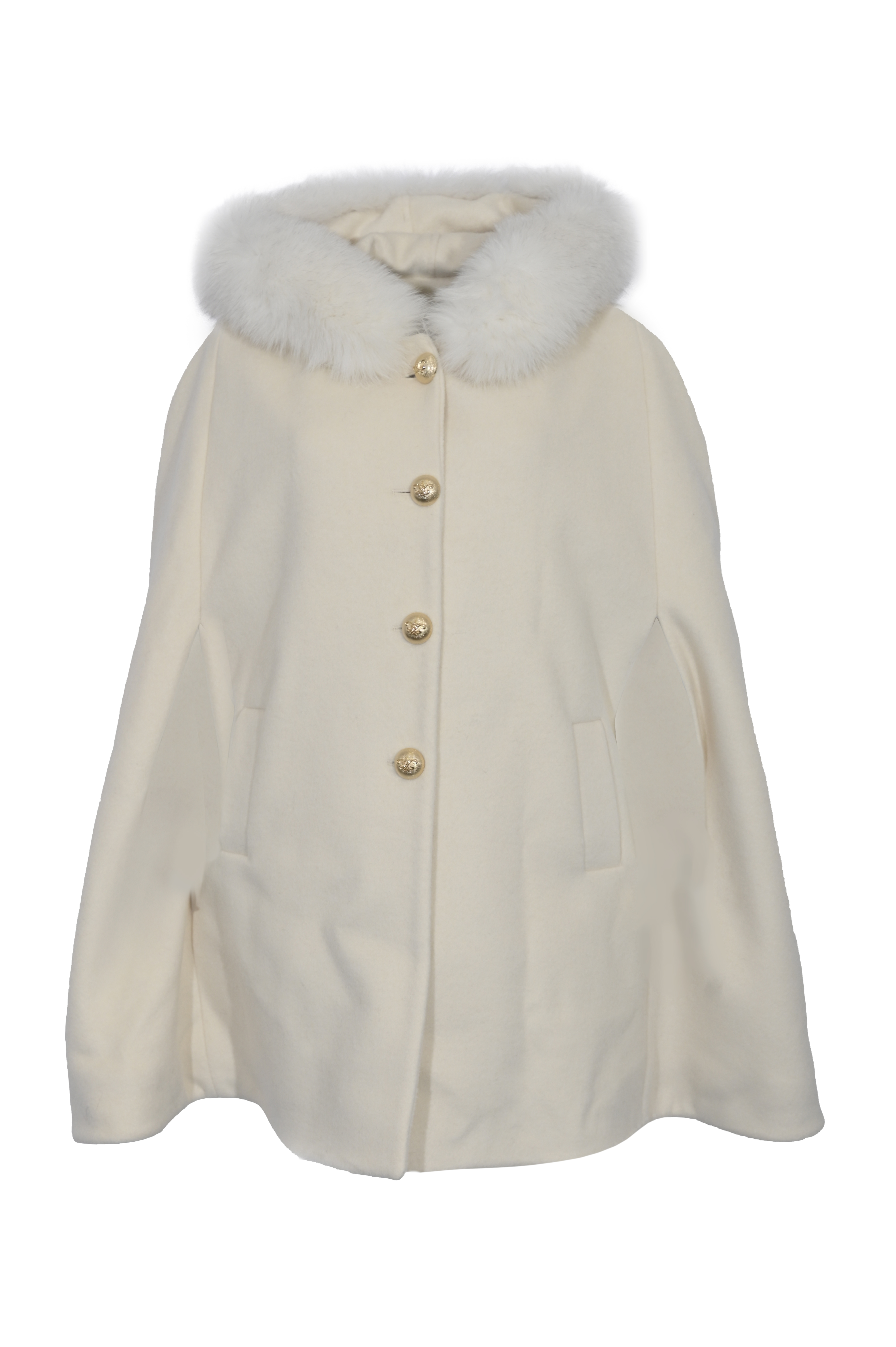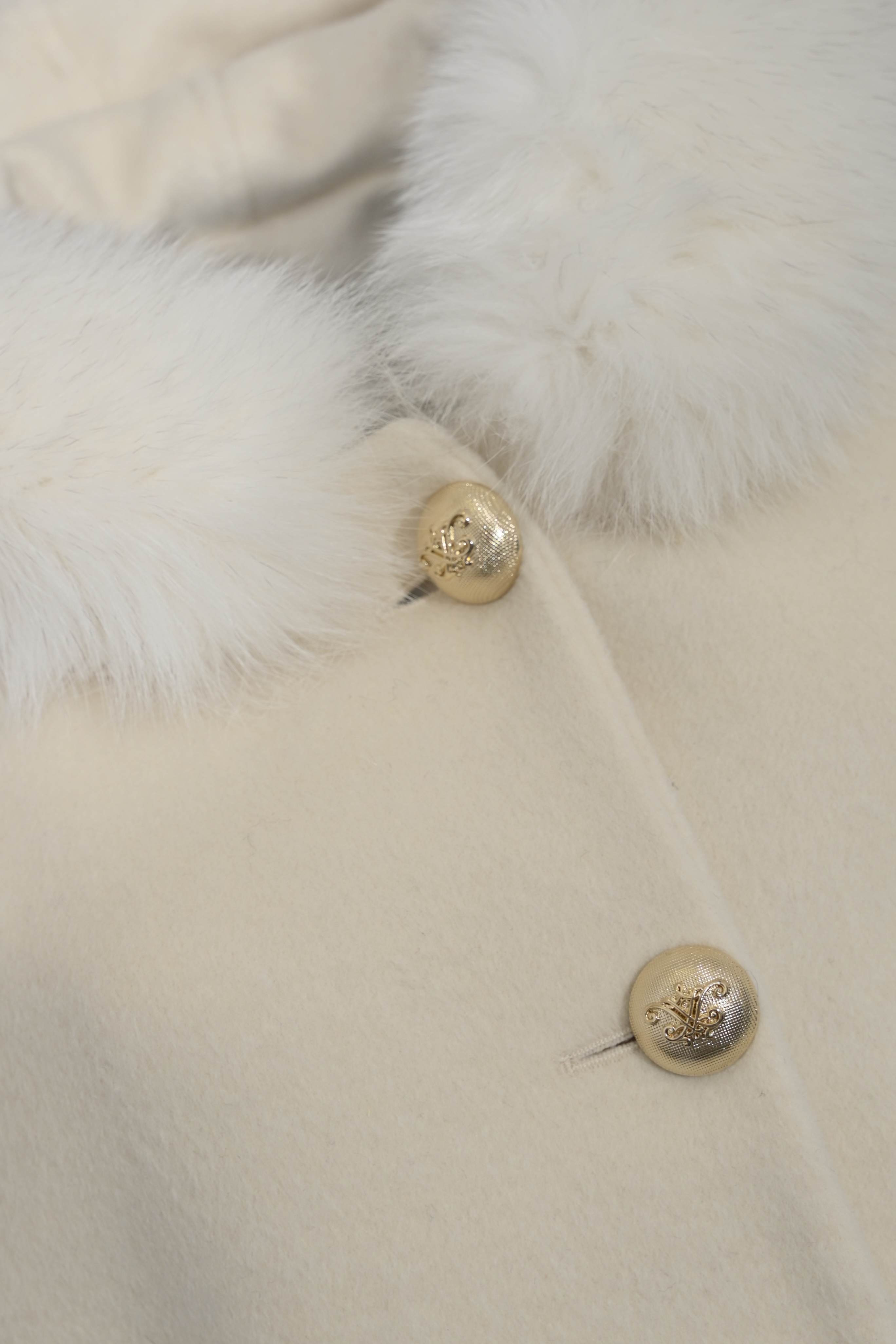 Mantella CD1223 effetto lana con inserti in pelliccia di volpe Panna
